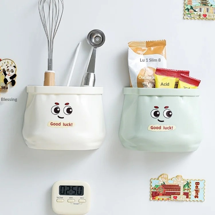 علبة تخزين مغناطيسية مستطيلة بلاستيكية بعيون كبيرة لثلاجة، علبة تخزين جذابة بدون ثقوب للتركيب على الحائط