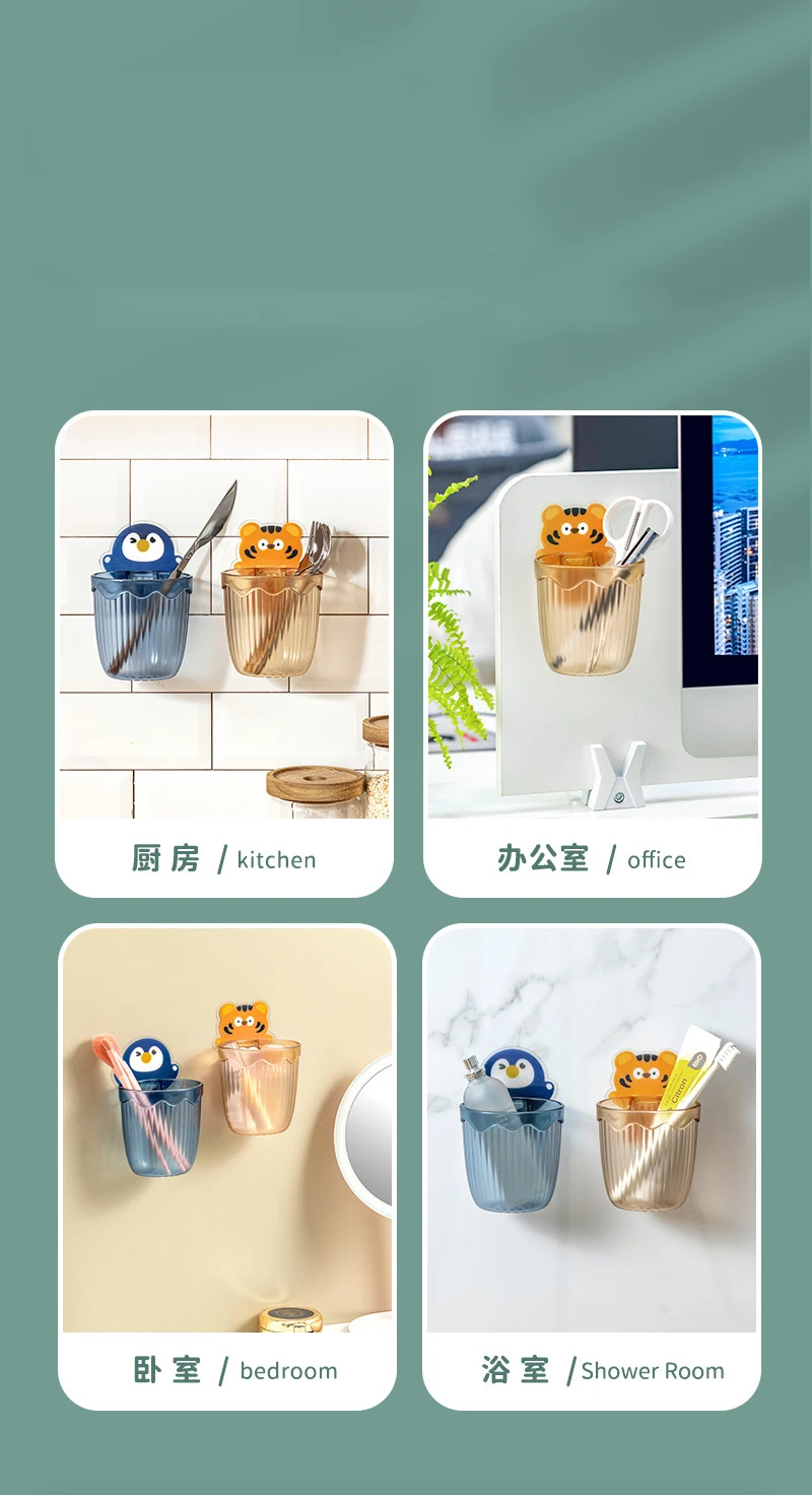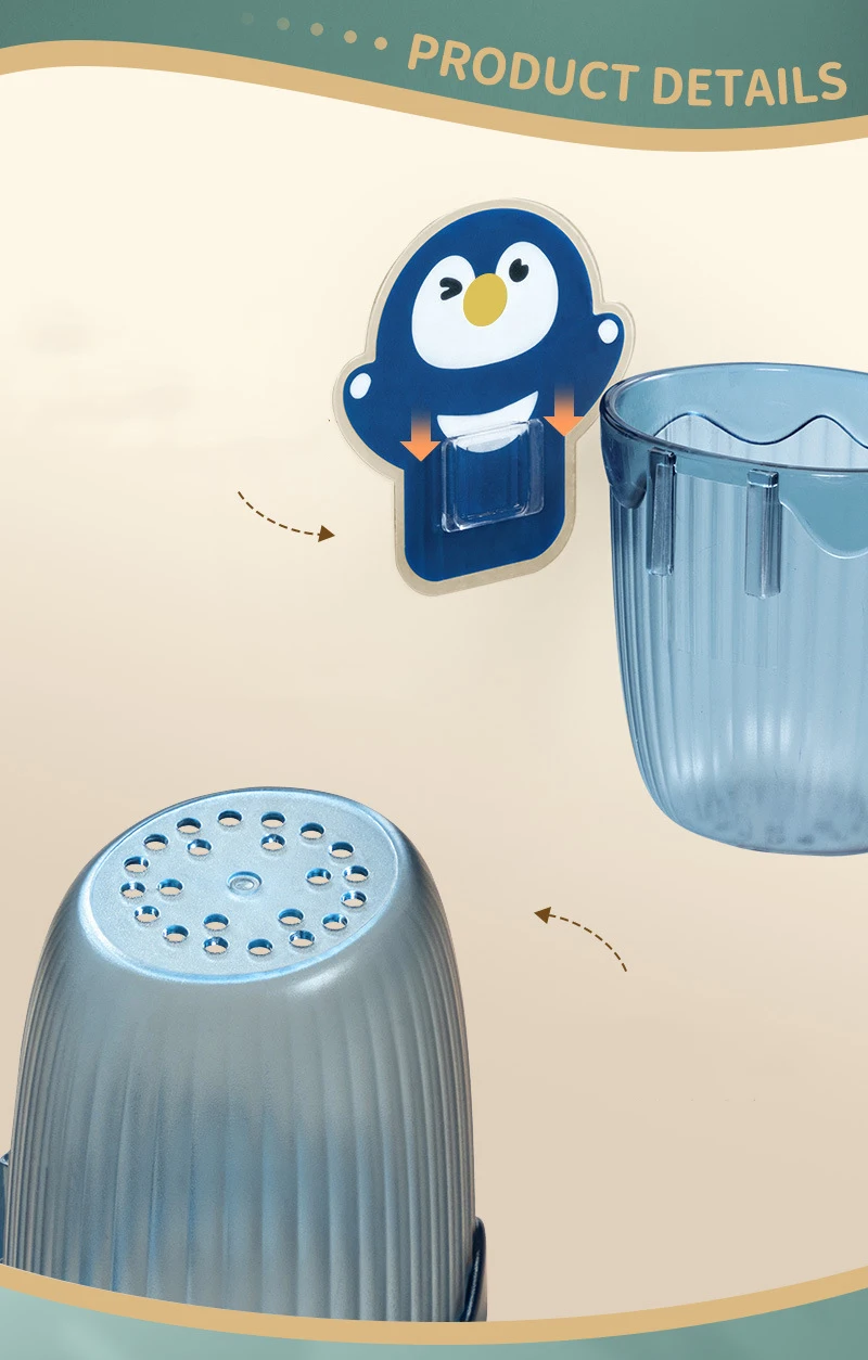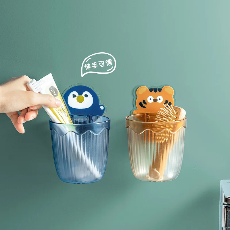 رف تخزين كرتوني للمرحاض مصنوع من البلاستيك، لتخزين أدوات الحمام مثل المشط ومعجون الأسنان وفرشاة الأسنان، مُثبَّت على الحائط، ويتضمن حاملًا لفرشاة الأسنان وصندوق تخزين