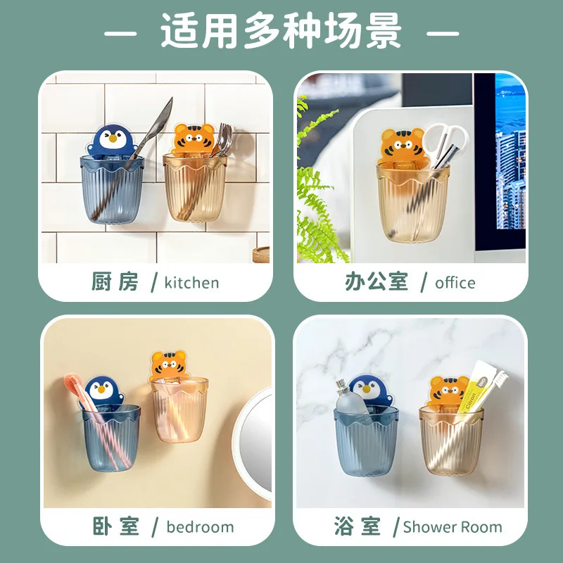 رف تخزين أسطواني لغسل اليدين في الحمام وتخزين فرشاة الأسنان ومعجون الأسنان والمشط، مثبت على الحائط دون الحاجة إلى ثقب الجدار |