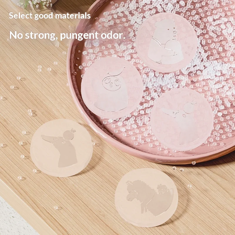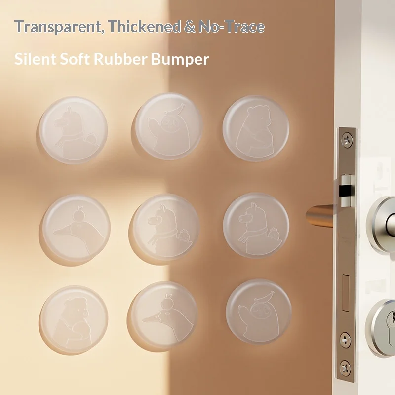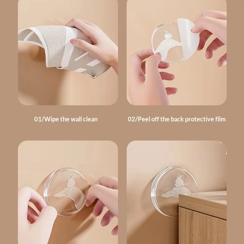 Nálepka a kobereček proti nárazu pro kliku zadních dveří ledničky, zarážka pro hlavu postele – průhledné přísavné upevnění – model