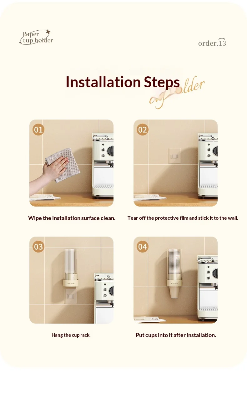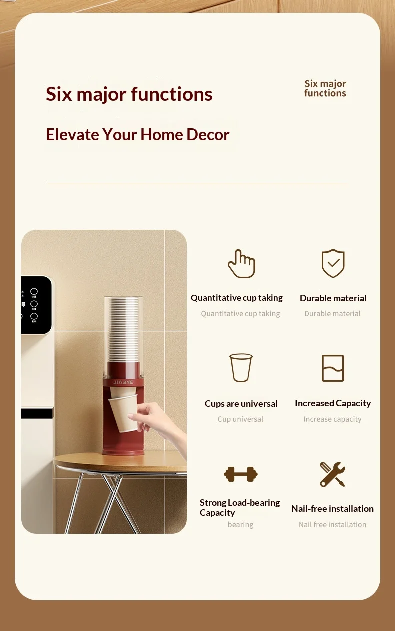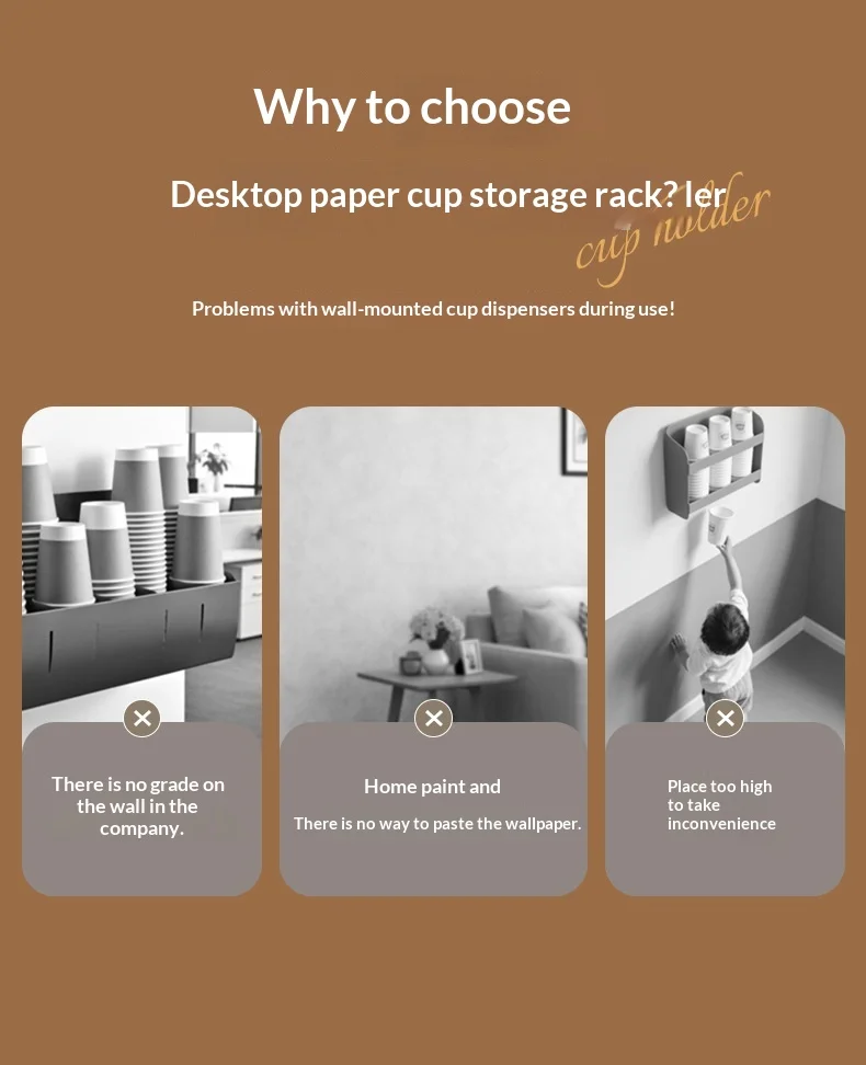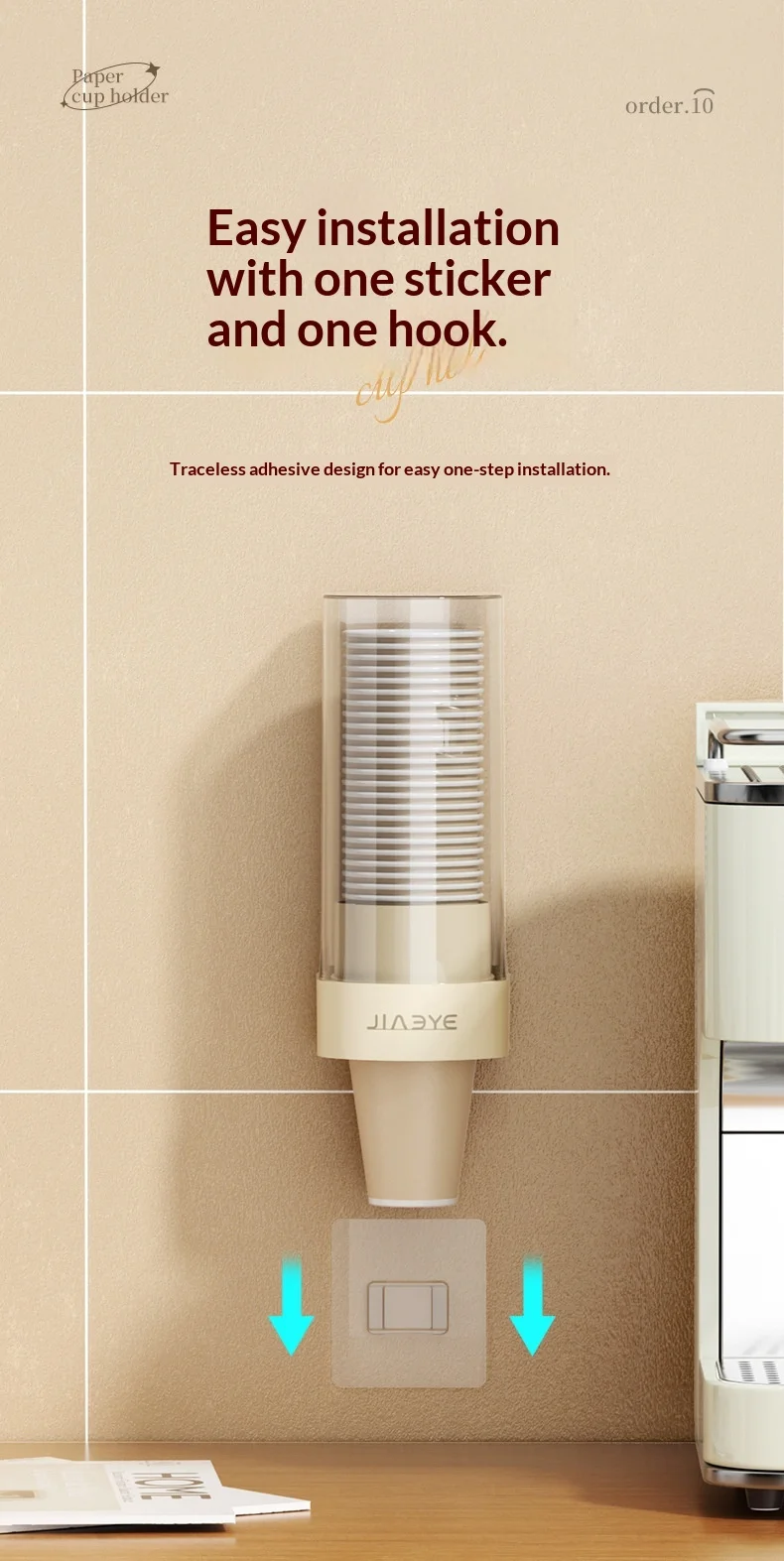 Distributeur de gobelets jetables sans perçage, boîte de rangement domestique, support mural en plastique pour gobelets, destiné aux cafés, bars et services traiteurs, style nordique