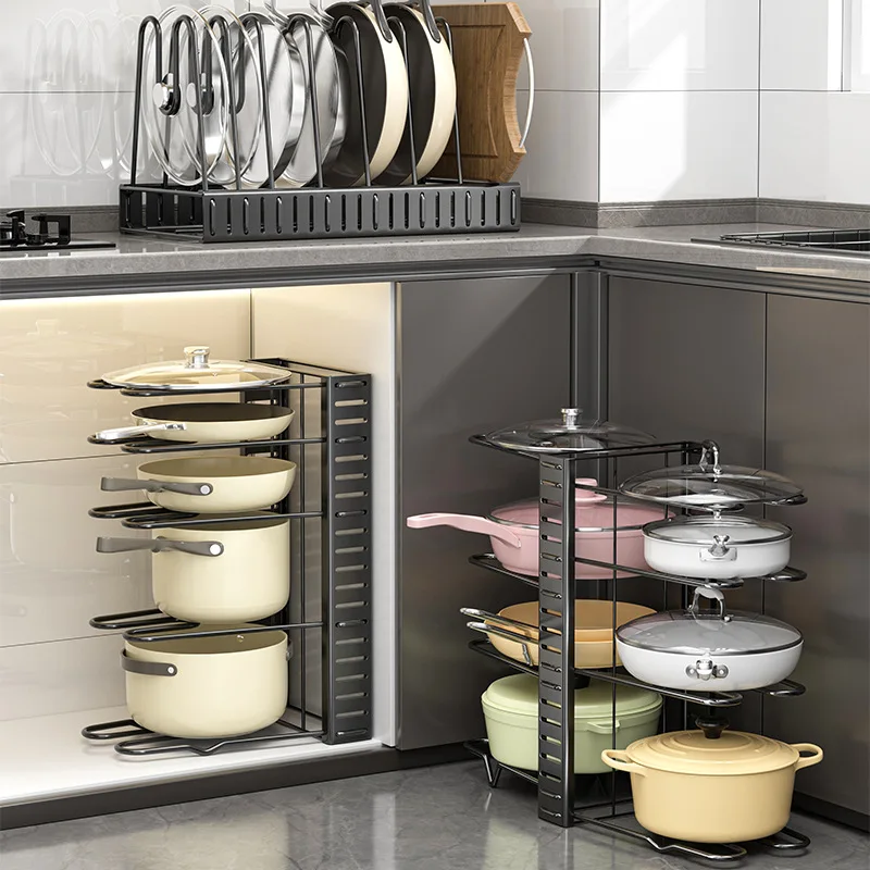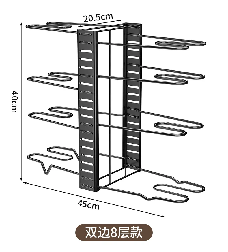 3. Multifonctionnel et universel : Le support à 8 niveaux convient au rangement des casseroles, poêles et autres articles de cuisine, ce qui le rend idéal aussi bien pour les cuisines résidentielles que commerciales.