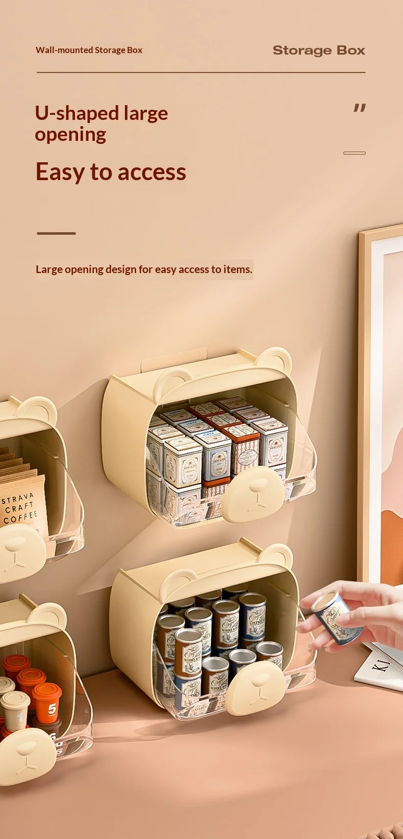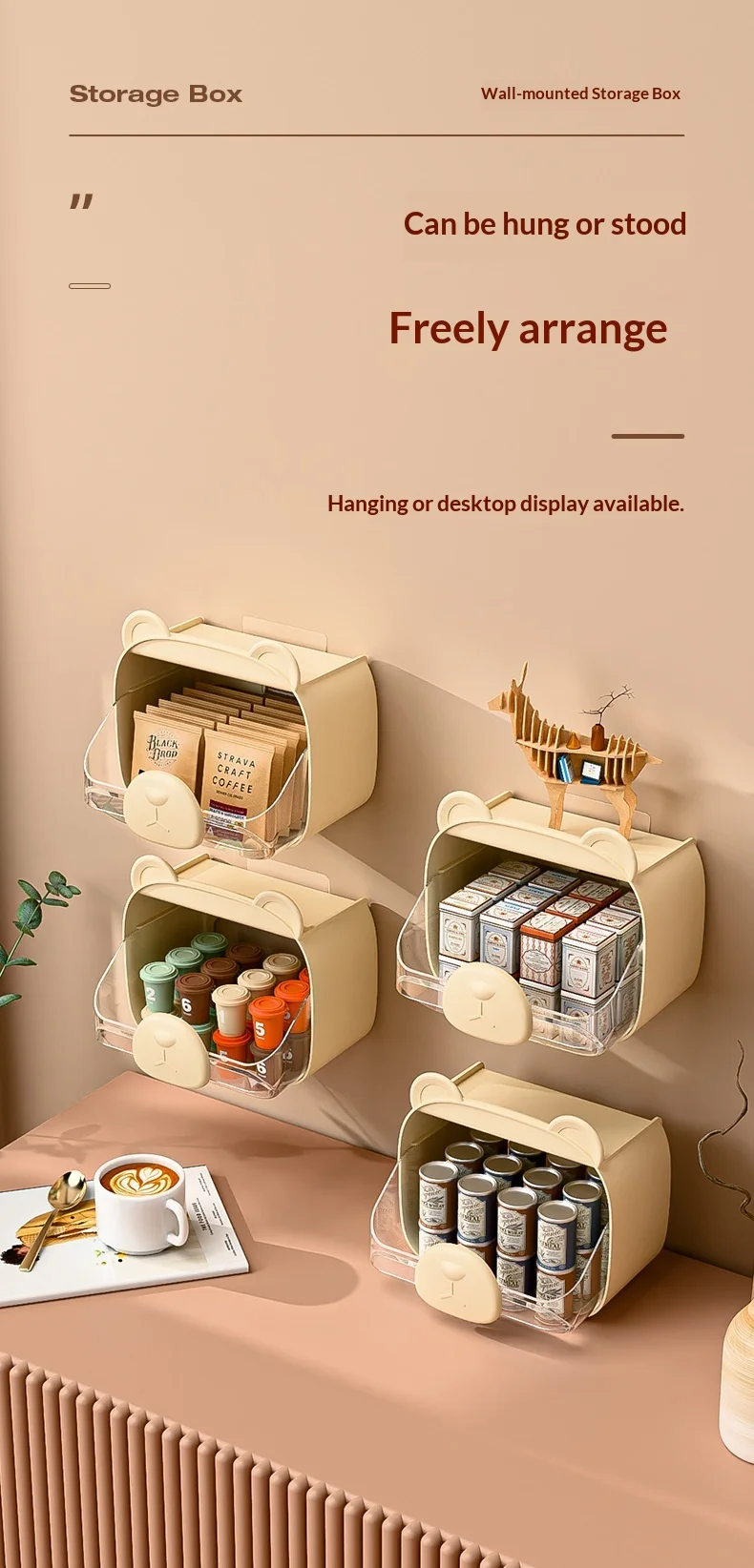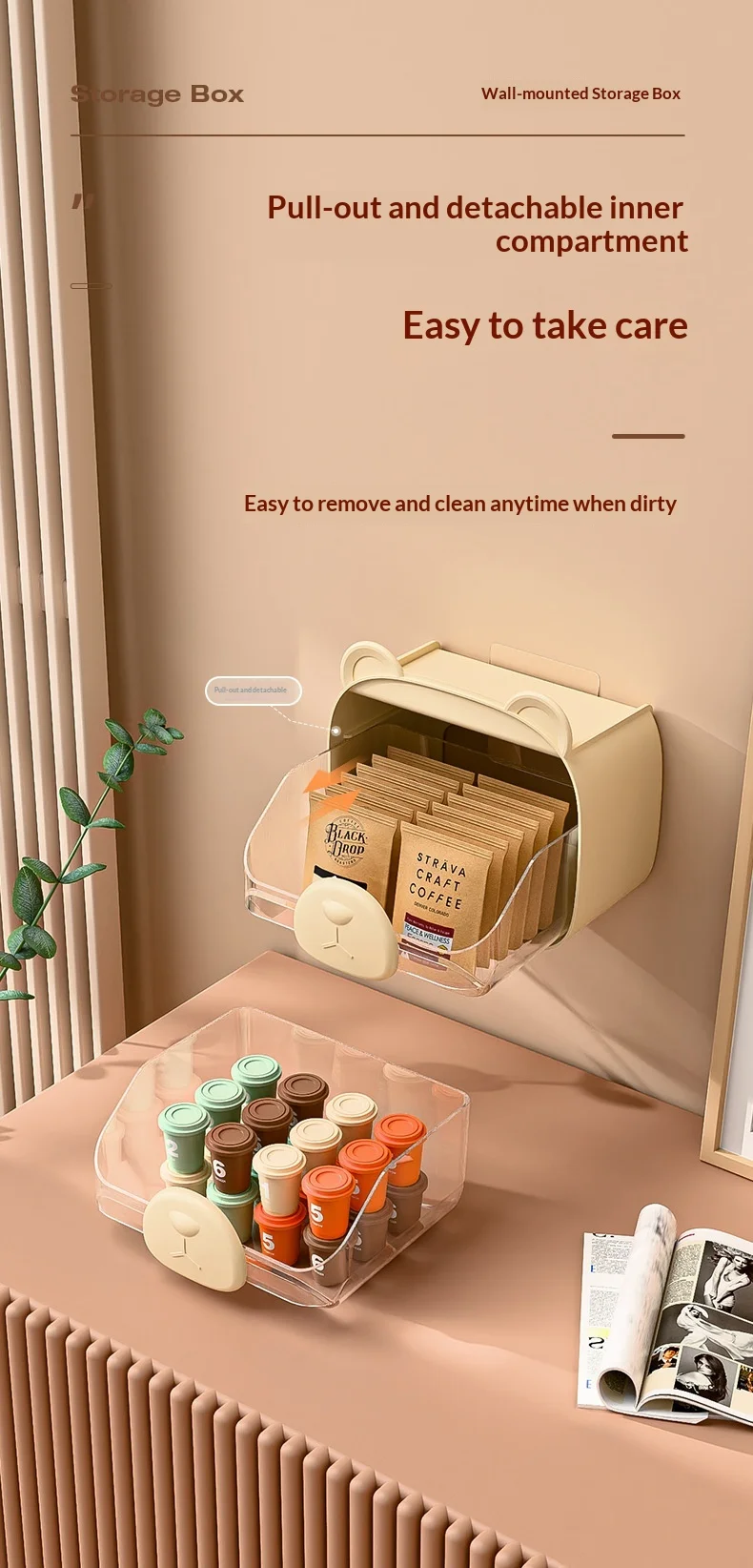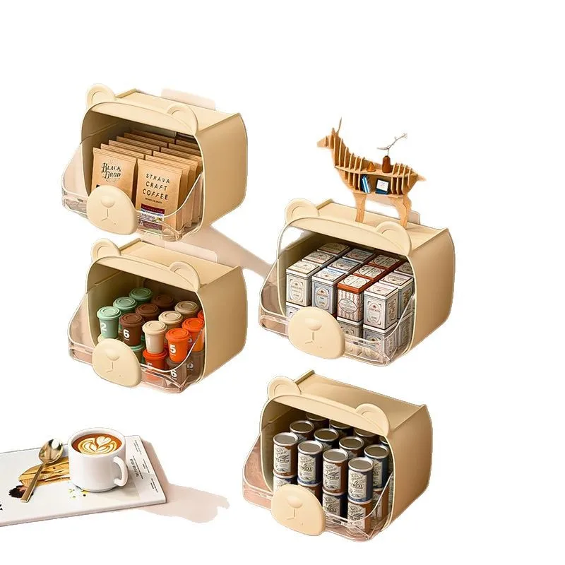 Boîte de rangement en plastique alimentaire, tiroir à sachets de thé, support mural multifonctionnel pour collations, bureau ou café, à poser sur le bureau.