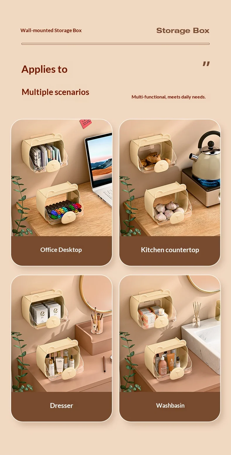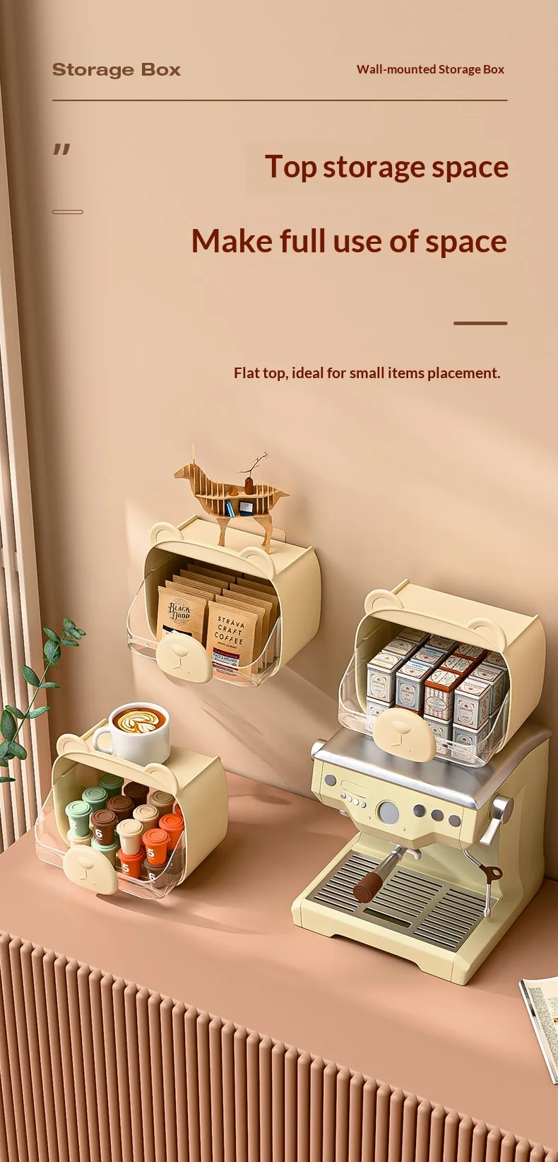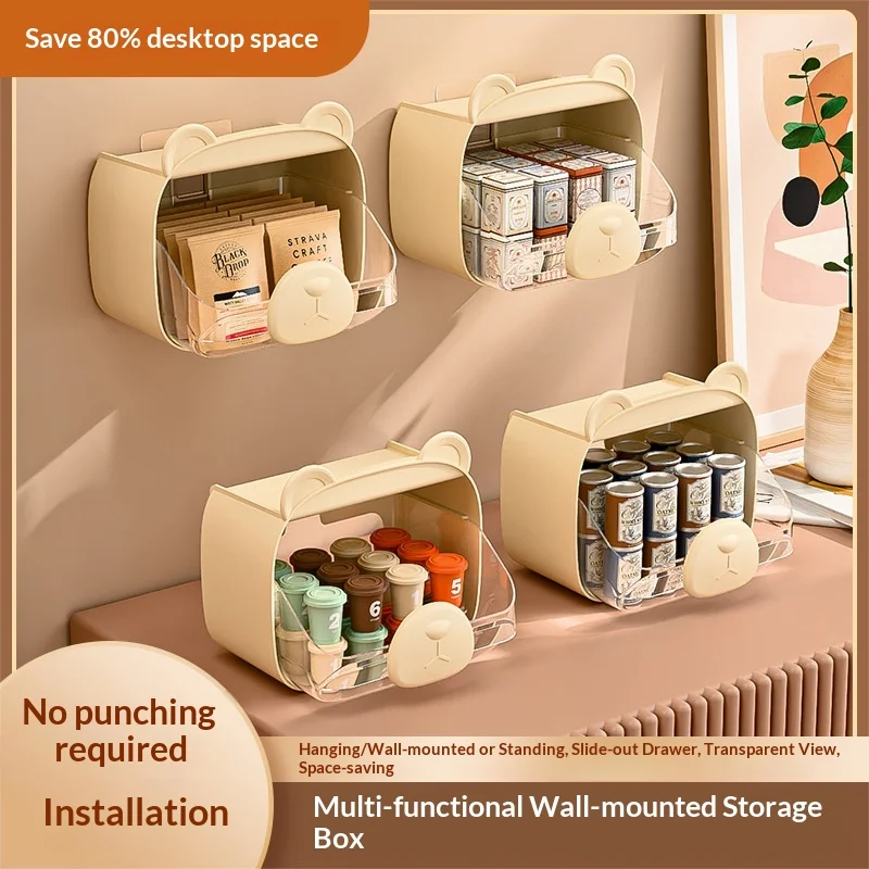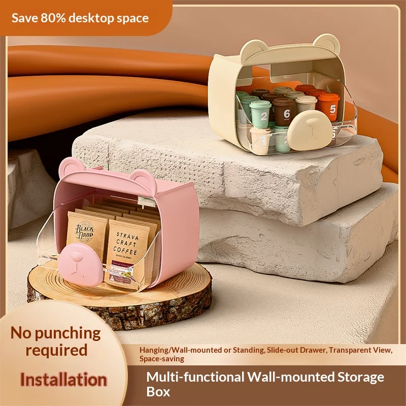 Boîte de rangement en plastique alimentaire, tiroir à sachets de thé, support mural multifonctionnel pour collations, bureau ou café, à poser sur le bureau.