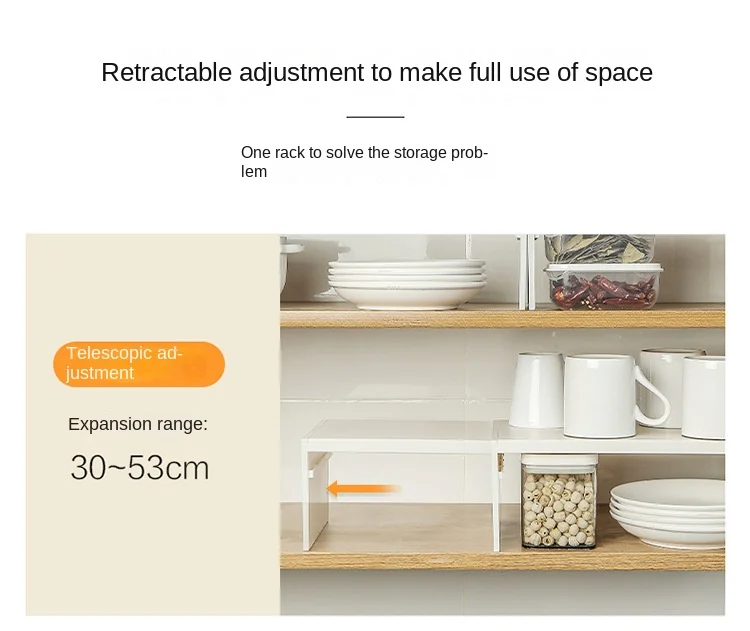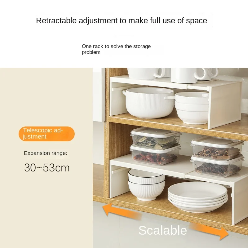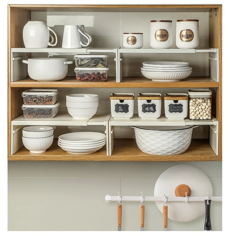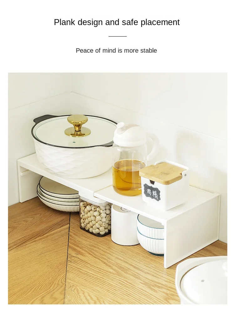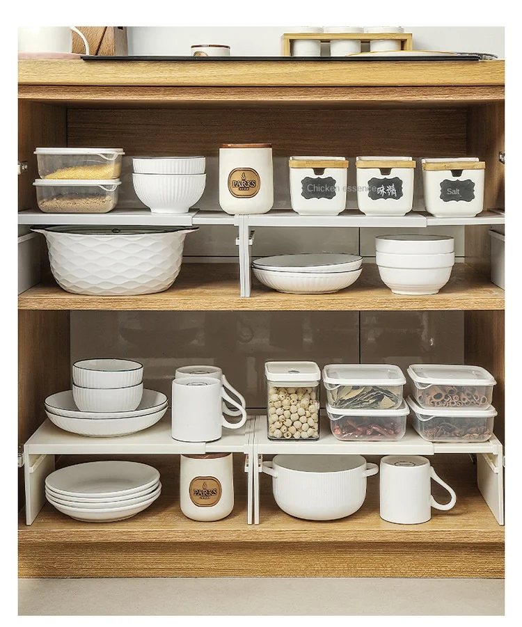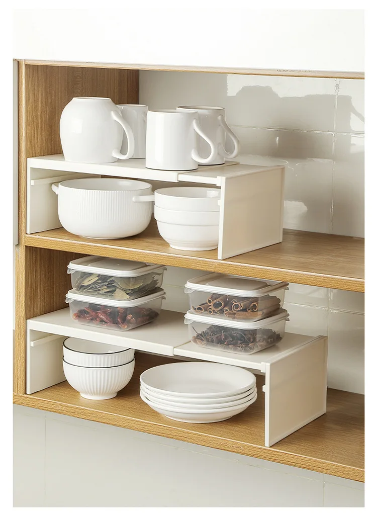 Rack de rangement rétractable en plastique pour la cuisine, non pliable, à poser sur le plan de travail ou dans un meuble, conception à plusieurs niveaux avec cloisons amovibles