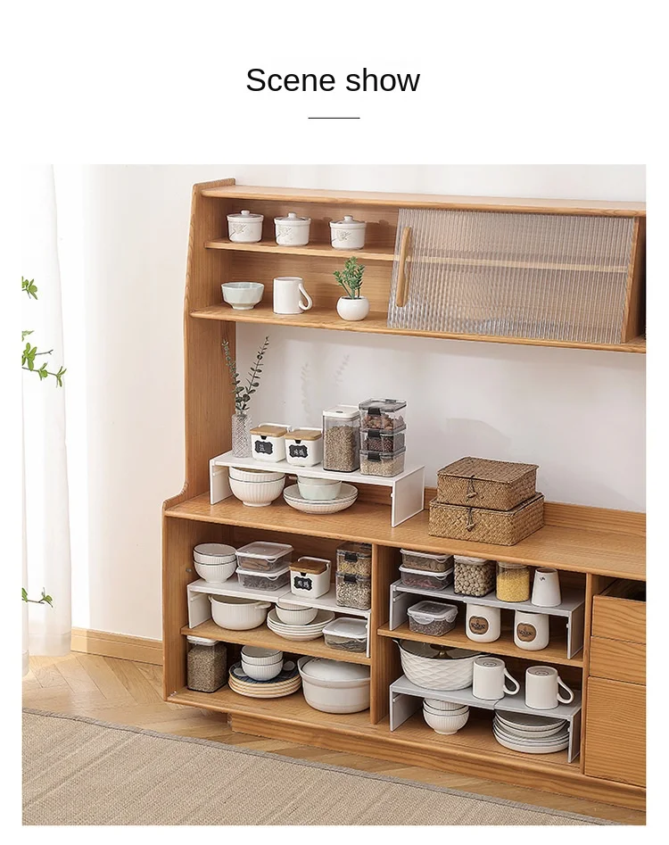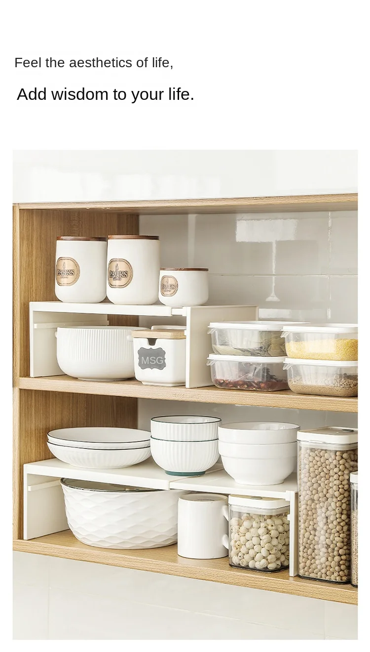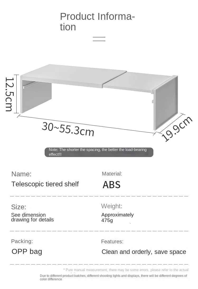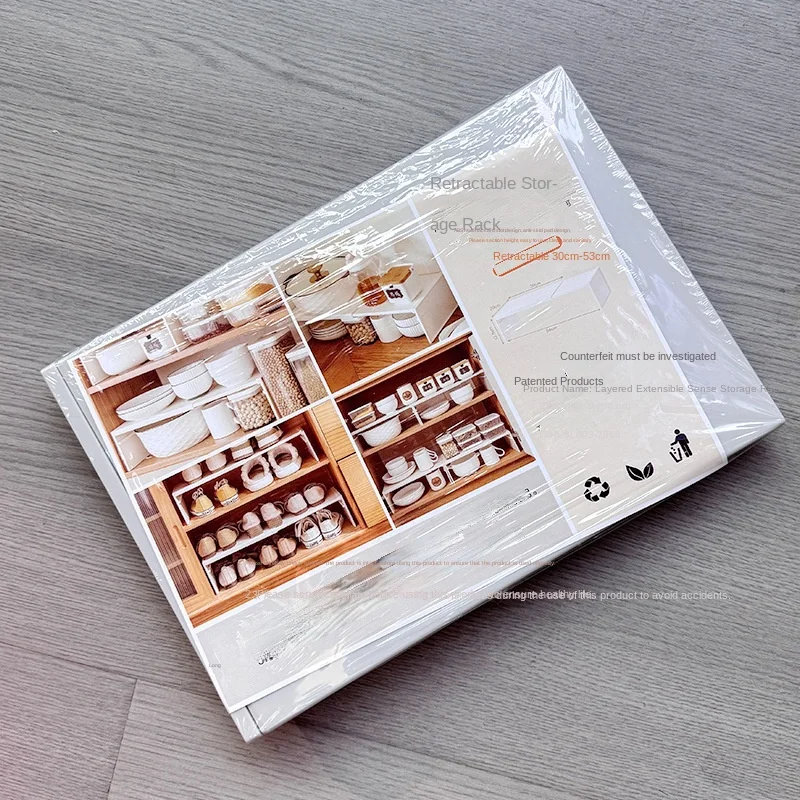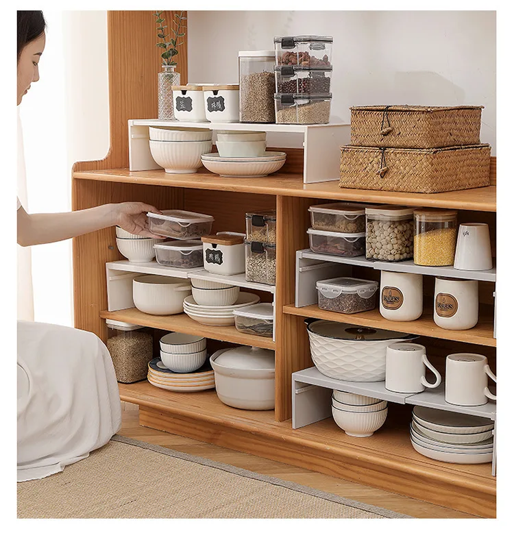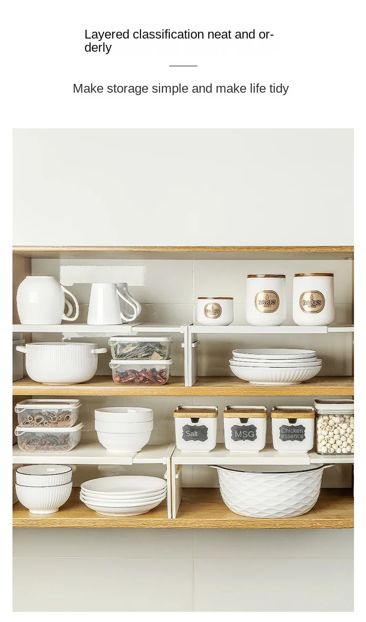 Rack de rangement rétractable en plastique pour la cuisine, non pliable, à poser sur le plan de travail ou dans un meuble, conception à plusieurs niveaux avec cloisons amovibles