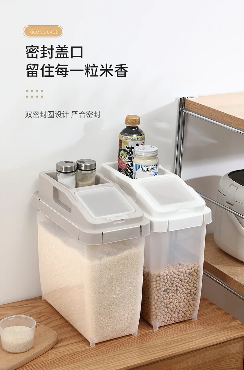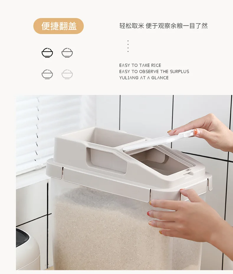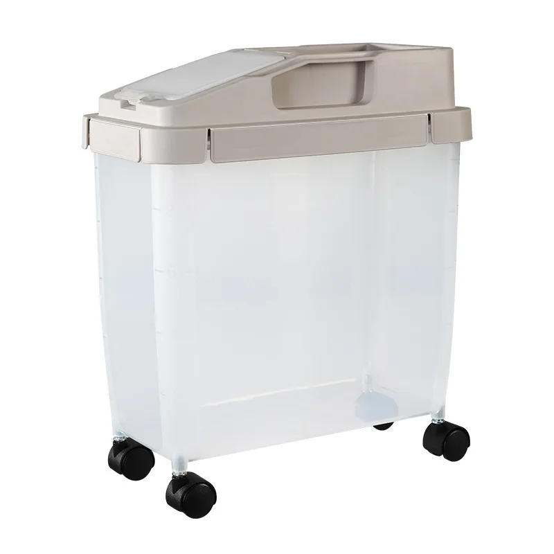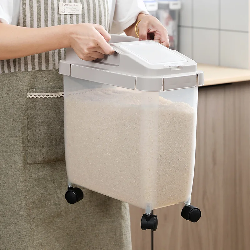 Contenants de stockage alimentaire étanches rectangulaires en PP, écologiques, grande capacité (10 L), contenant mobile pour riz avec roulettes, vente en gros
