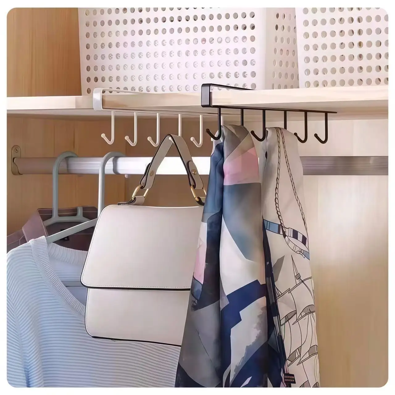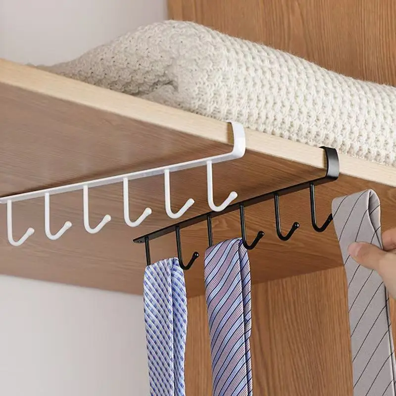 Rak Penyimpanan Logam Modern untuk Dapur dan Kamar Mandi dengan 6 Gantungan dan Rel, Organizer Pakaian Hemat Ruang yang Dipasang di Dinding untuk Kabinet/Lemari Pakaian