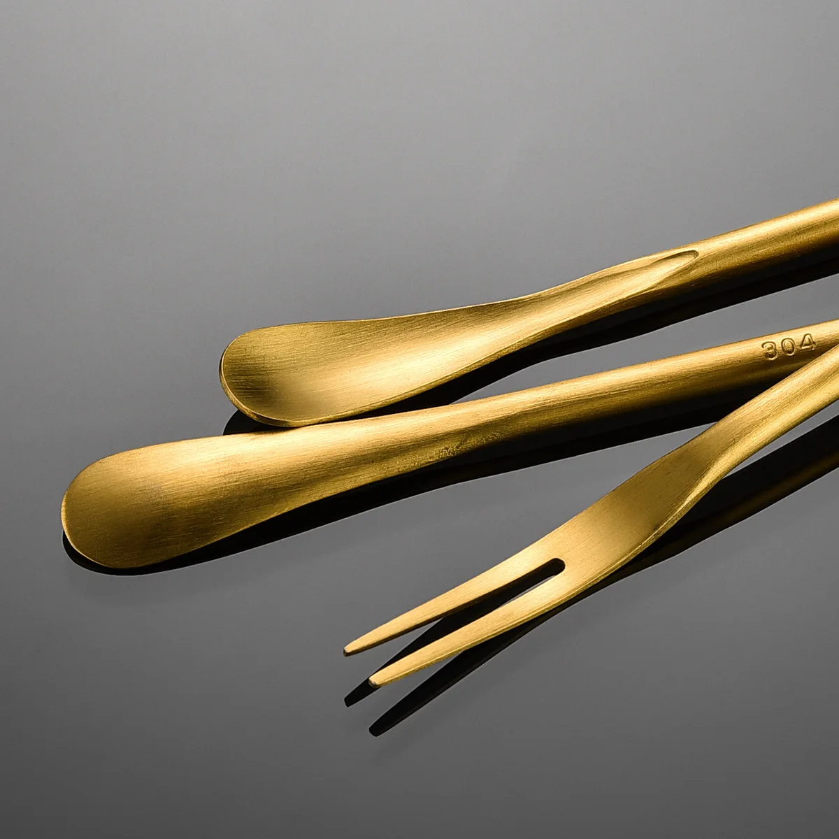 304 Stainless Steel Stirring Spoon Fruit Fork Matte Japanese-Style Handle Bar Spoon Cocktail Mixing Honey Spoon Hemp Wheel Light