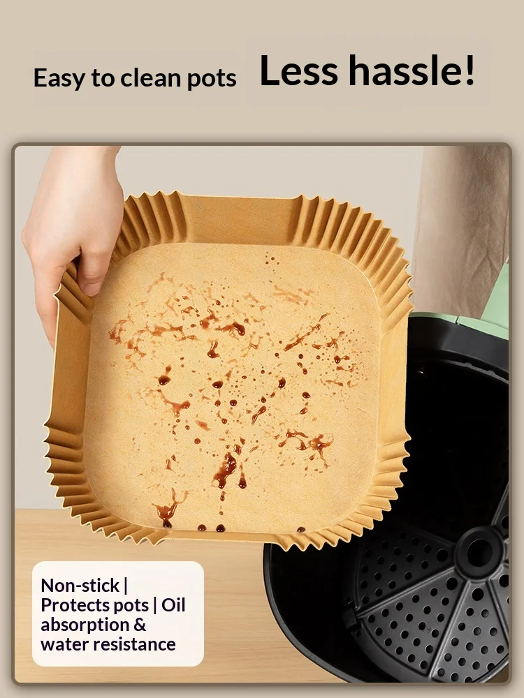 Air Fryer Special Paper Oven Oil Absorbing Pad Household Food Grade Oil Barrier Bowl High Temperature Resistant Square Baking
