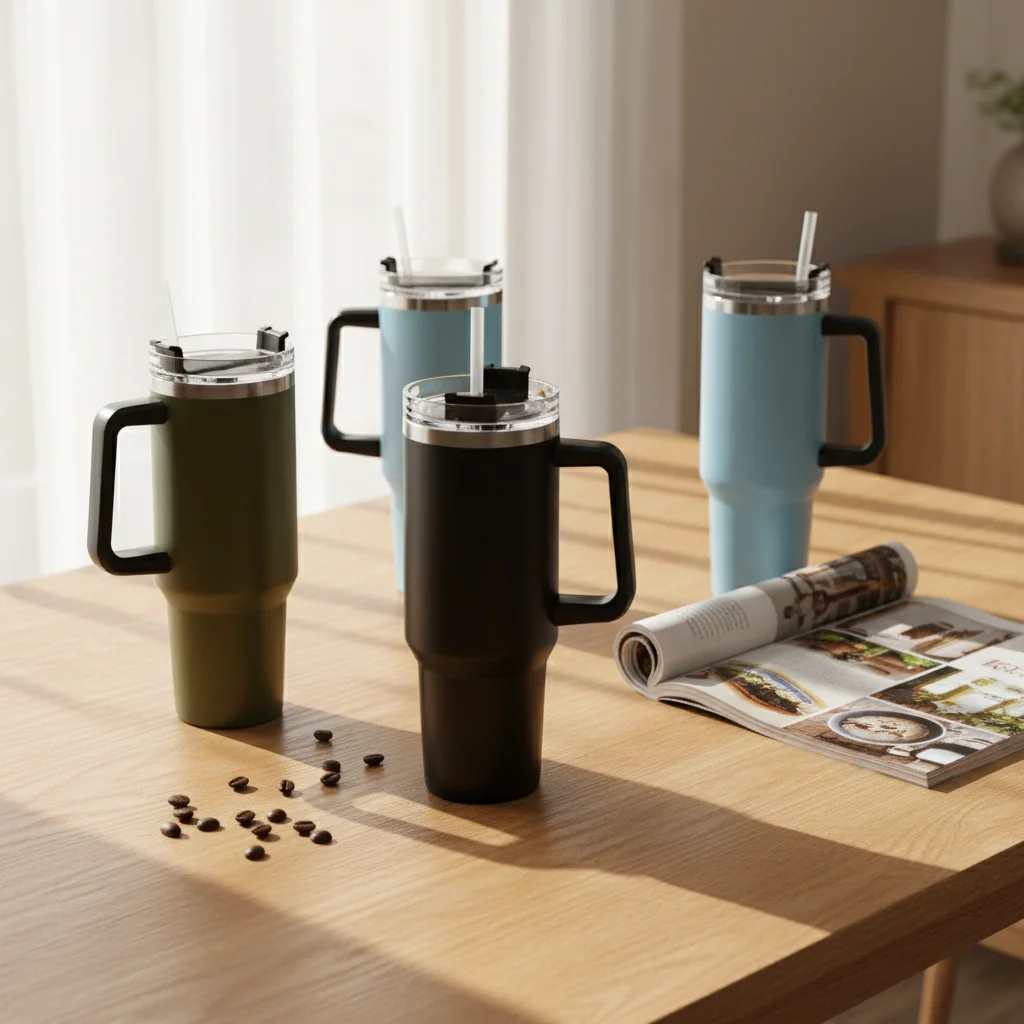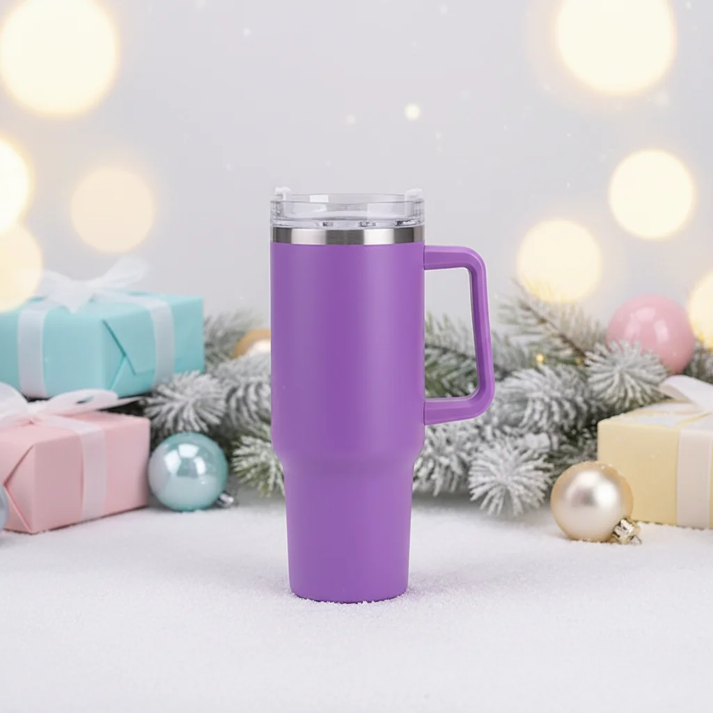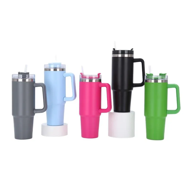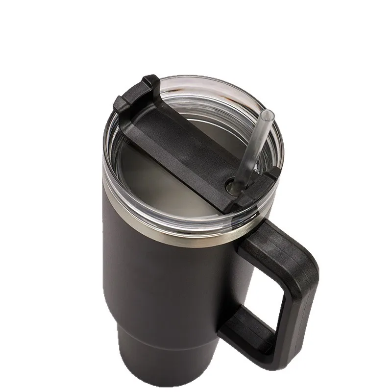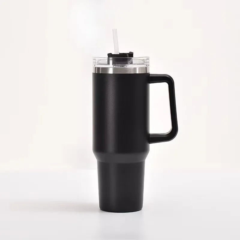 Cross-border 304 Stainless Steel 40oz Vacuum Insulated Car Cup with Handle and Straw Large Capacity for Hot/Cold Drinks
