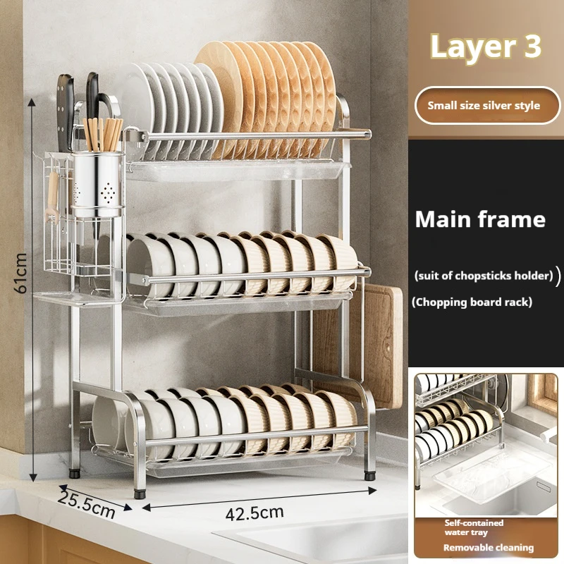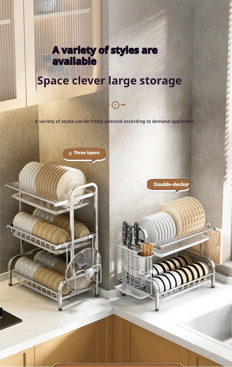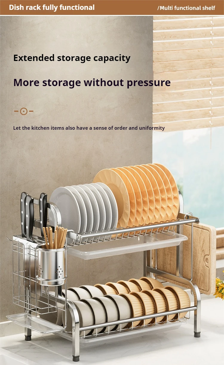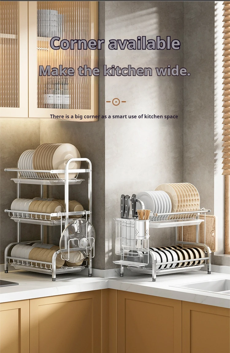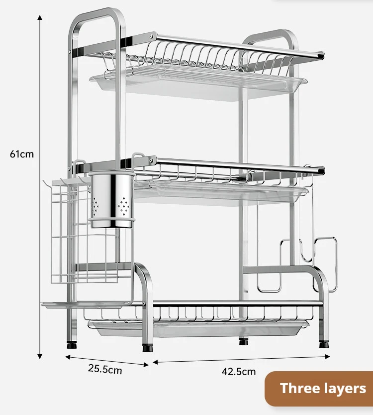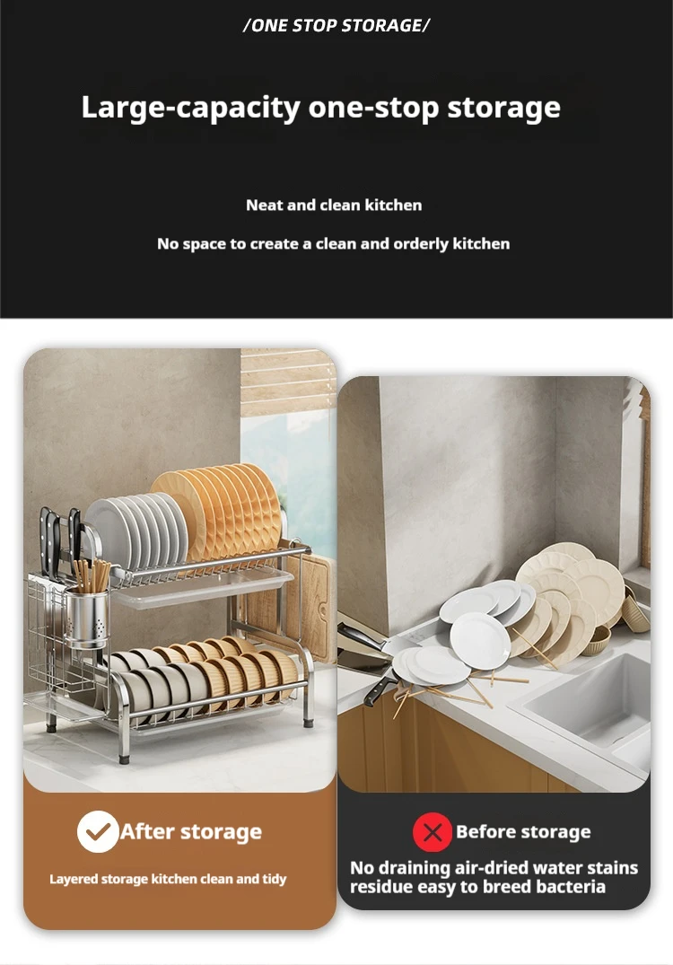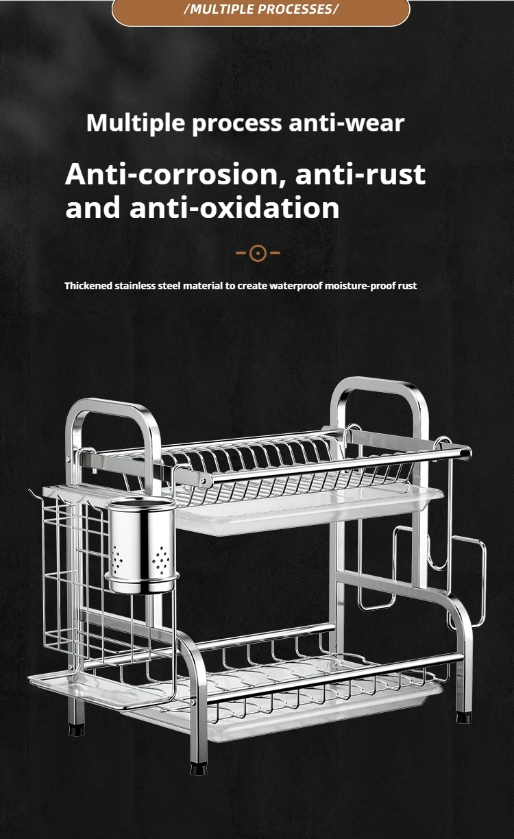 Factory Direct Sale Standing Type Rustproof Tier Dish Drying Rack Kitchen Use Oversink Dish Rack Fold Dish Rack