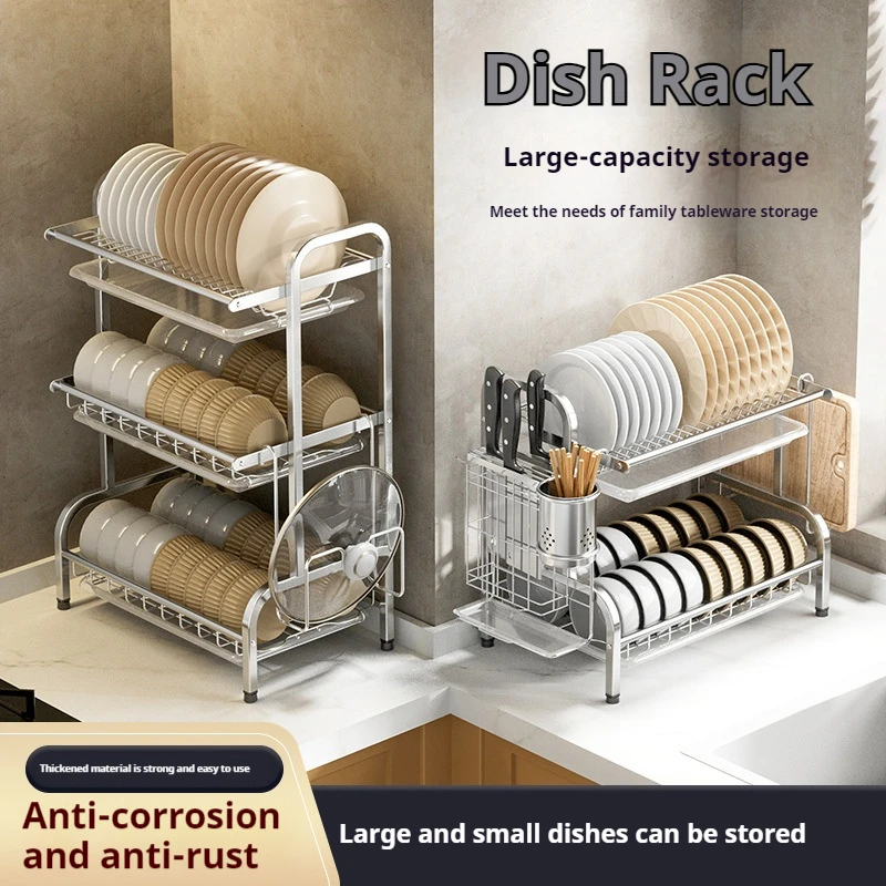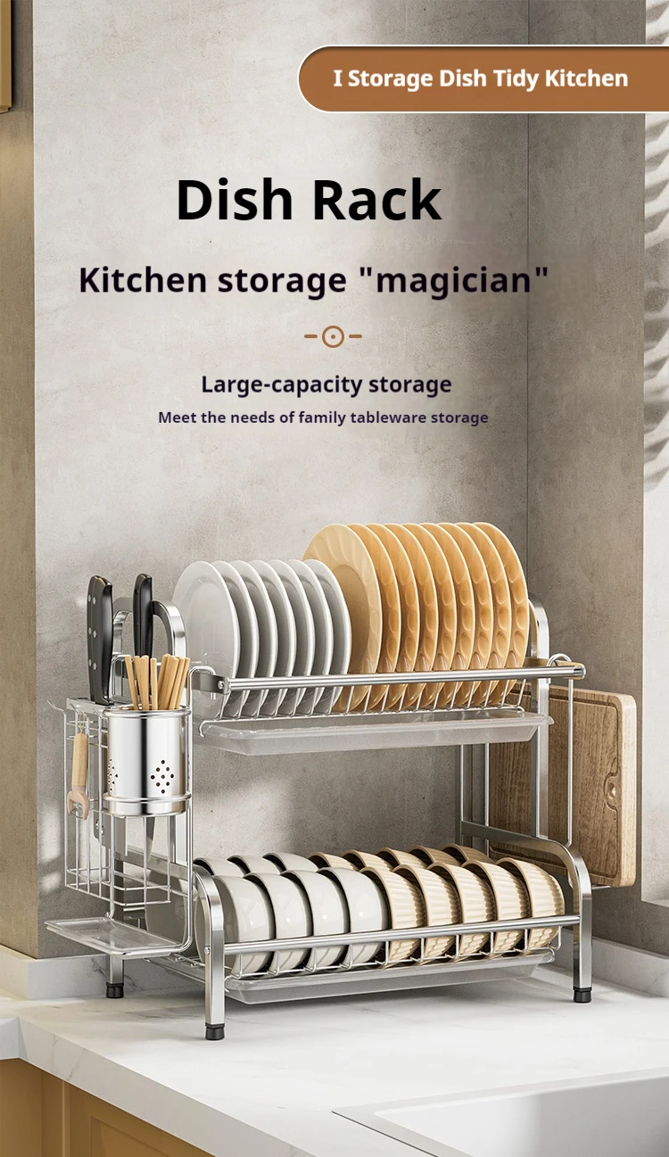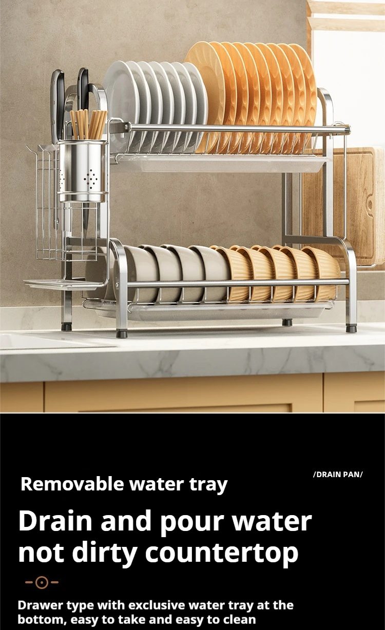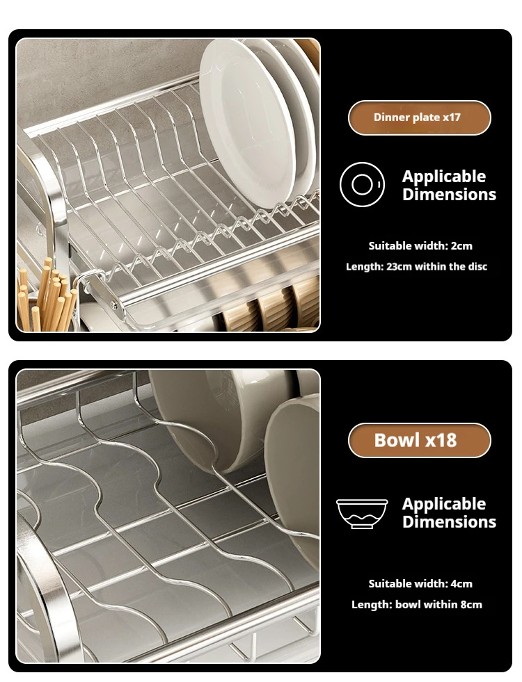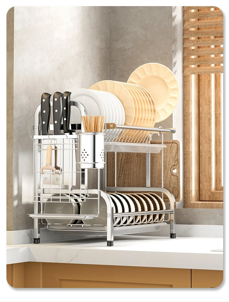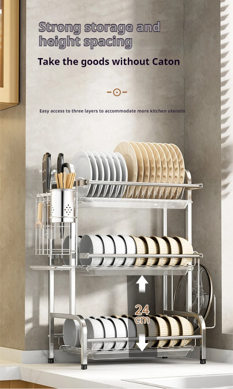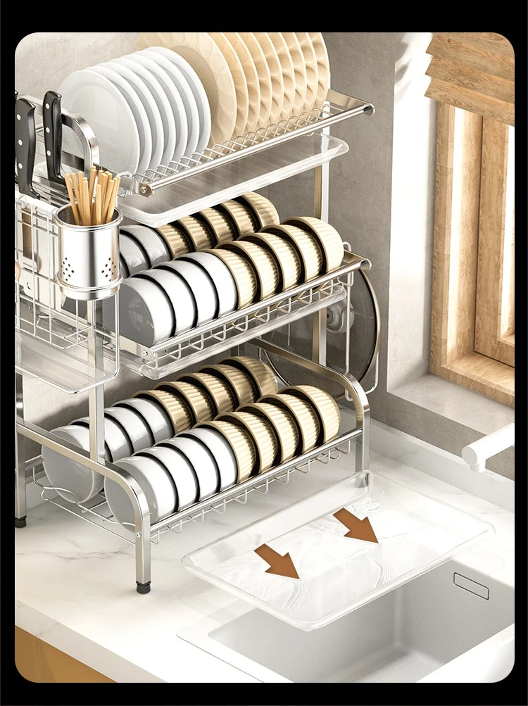 Factory Direct Sale Standing Type Rustproof Tier Dish Drying Rack Kitchen Use Oversink Dish Rack Fold Dish Rack