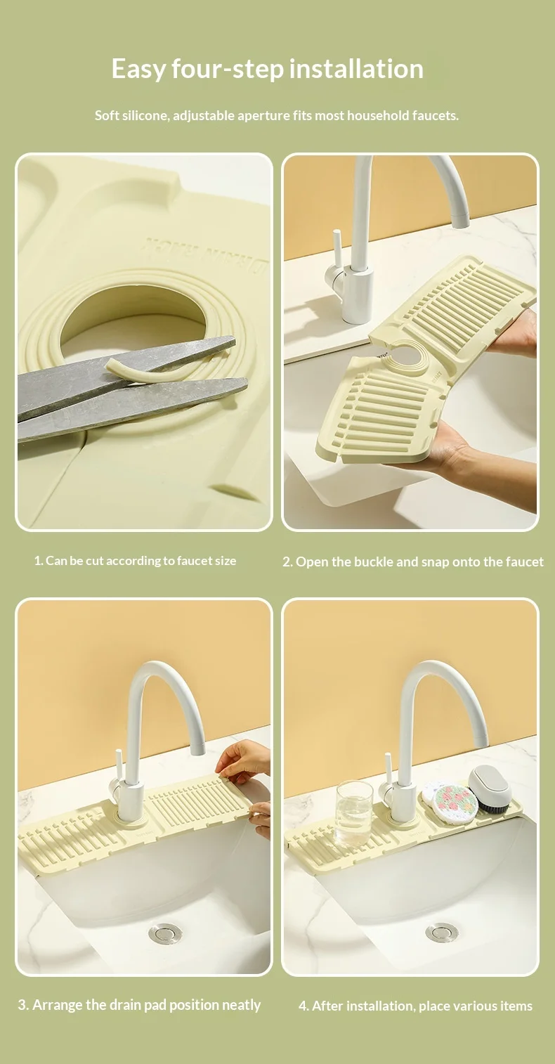 Faucet Drain Pad Splash-proof Kitchen Sink Water Retaining Cuttable Folding Narrow Side Wash Table Absorbent Mat