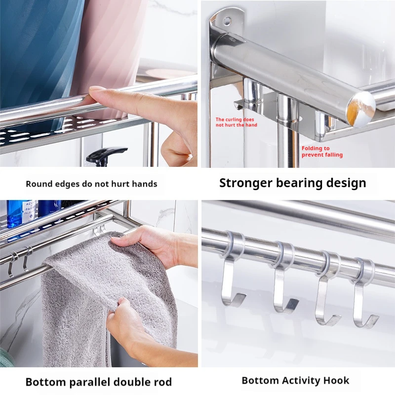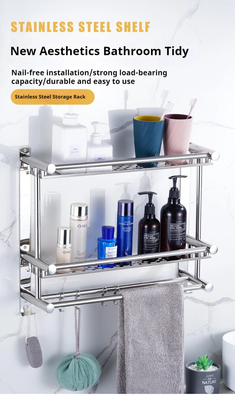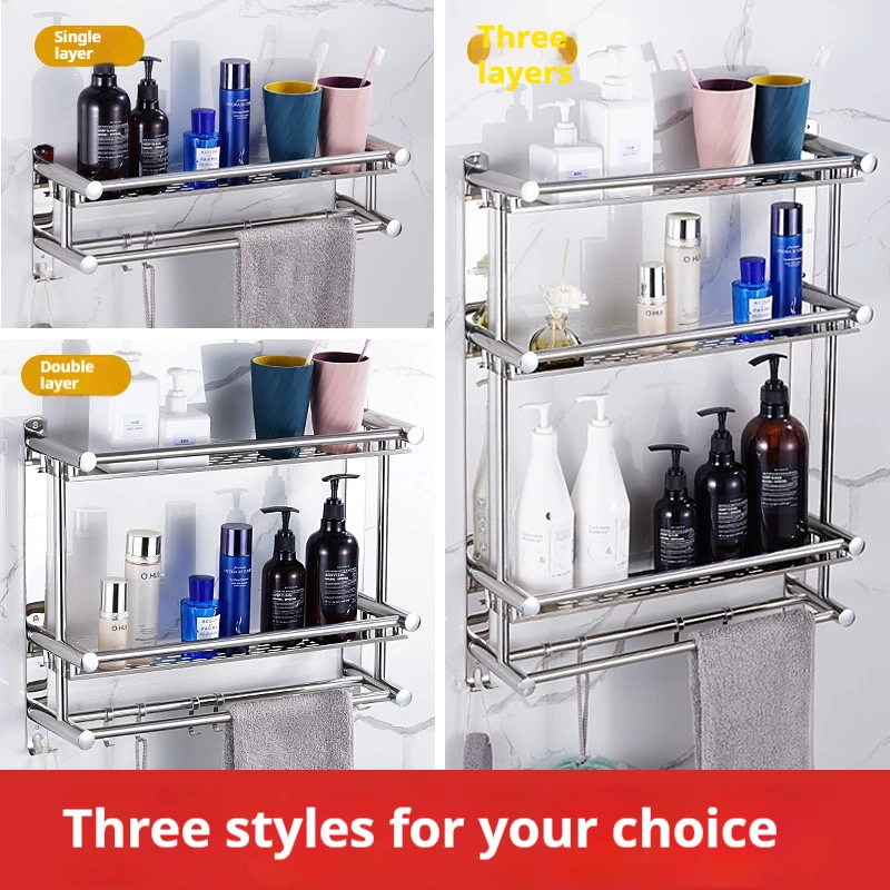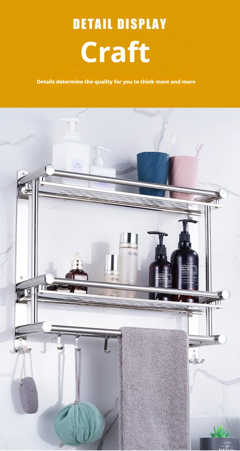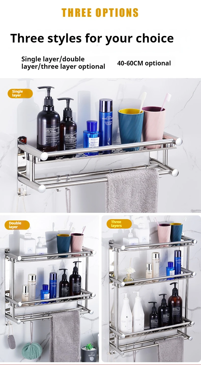 Hot Sale Wall Mounted Multi-layer Towel Storage Shelf Bathroom Accessories Stainless Steel Towel Organizer Rack