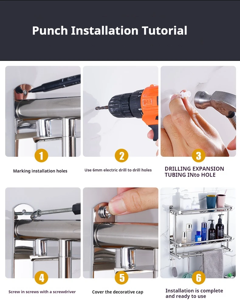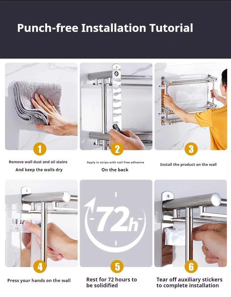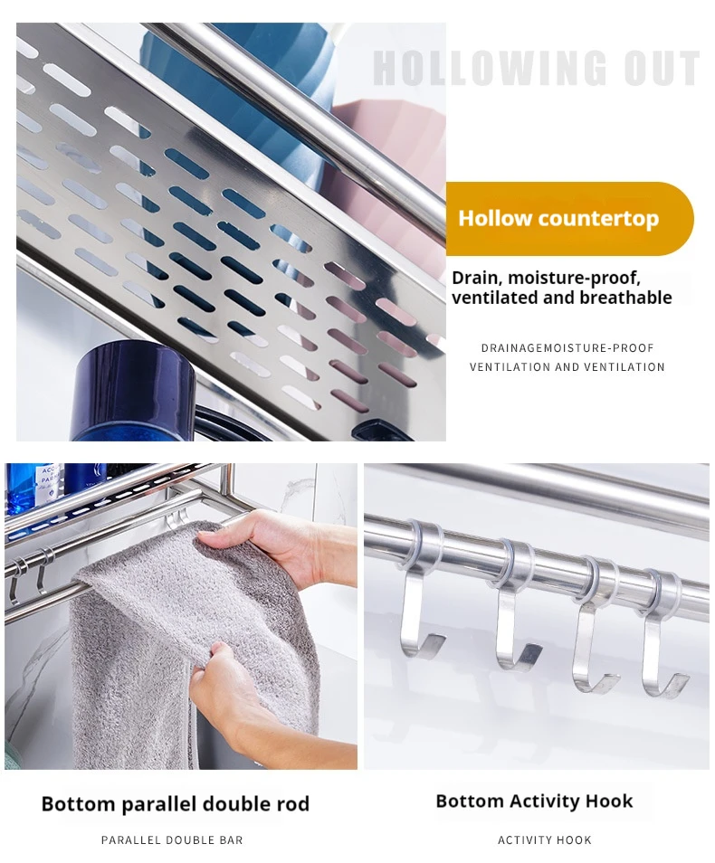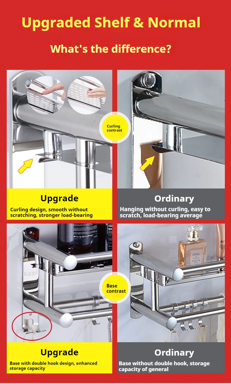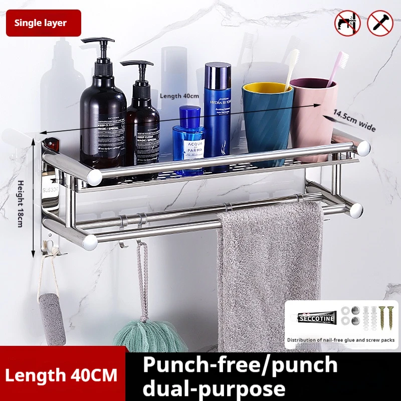 Hot Sale Wall Mounted Multi-layer Towel Storage Shelf Bathroom Accessories Stainless Steel Towel Organizer Rack