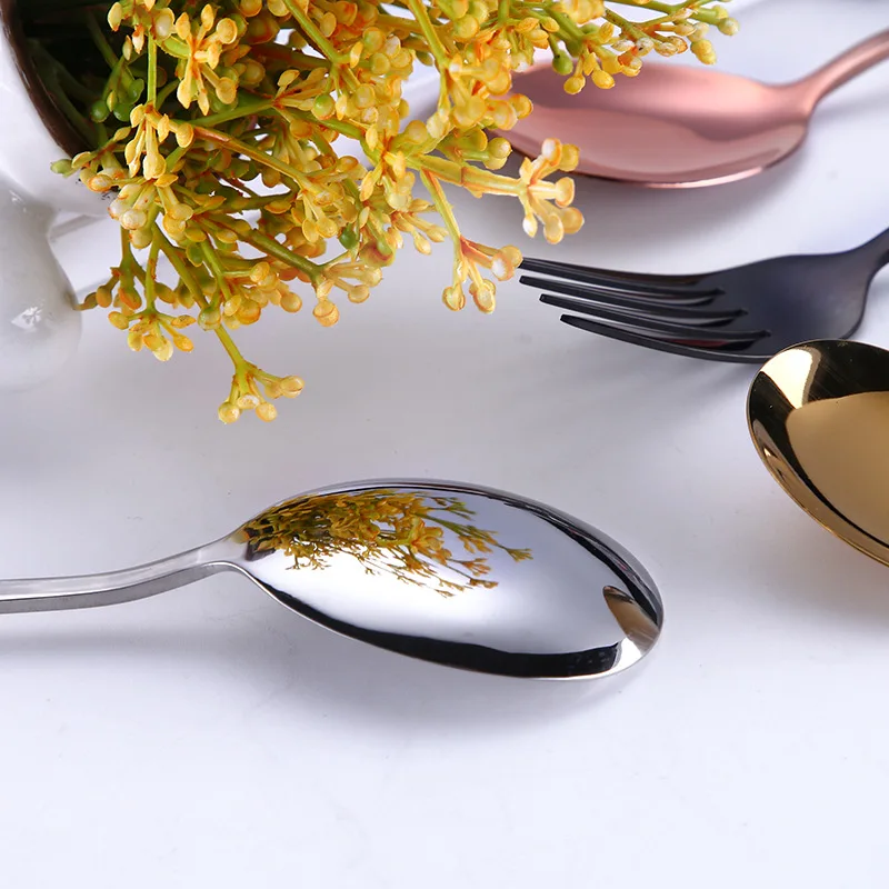 Korean Style Light Luxury 304 Stainless Steel Thickened Long Handle Creative Stirring Spoon Gift Household Dining Gold Plated