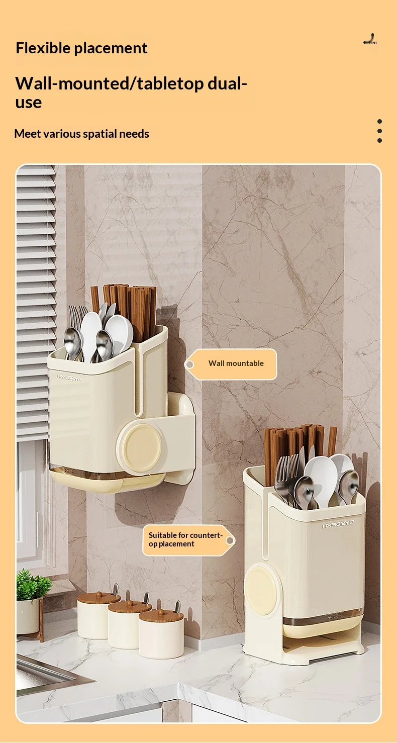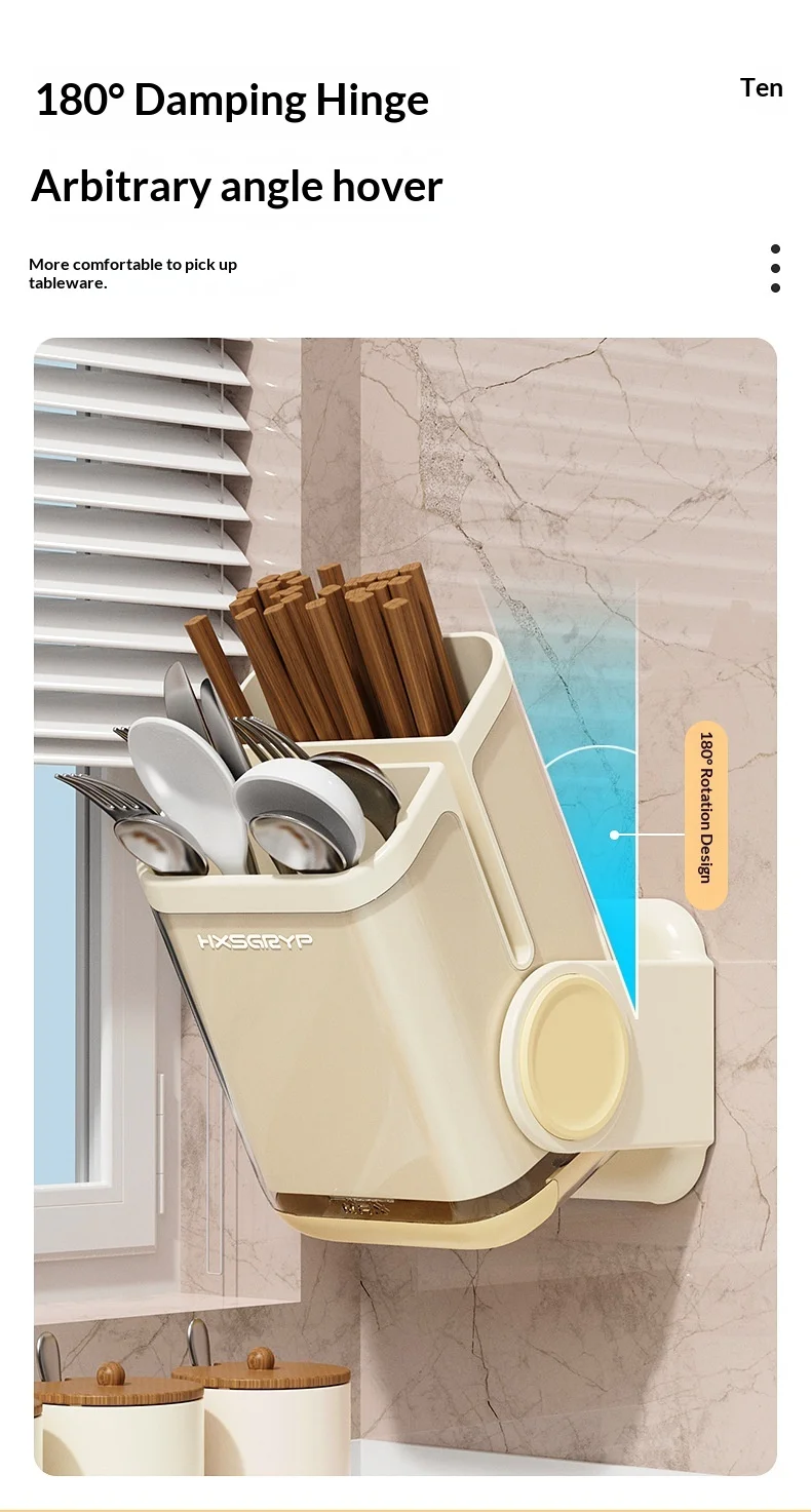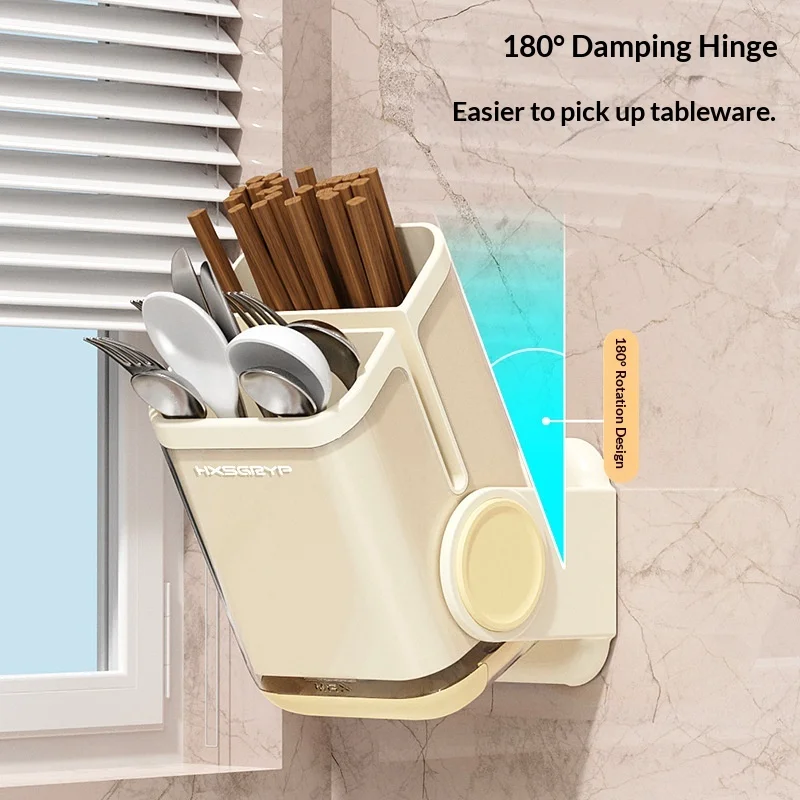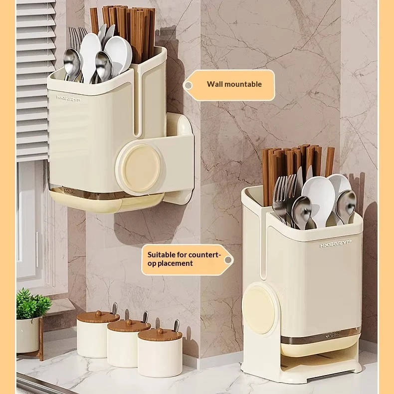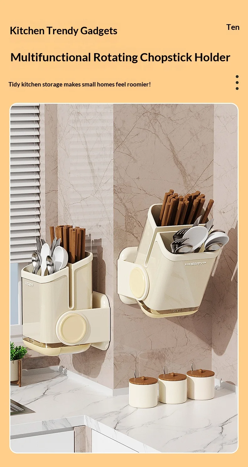 Plastic Kitchen Wall-mounted Punch-free Non-folding Chopsticks Holder Rotatable Design Dual-Purpose Storage Rack for Countertop