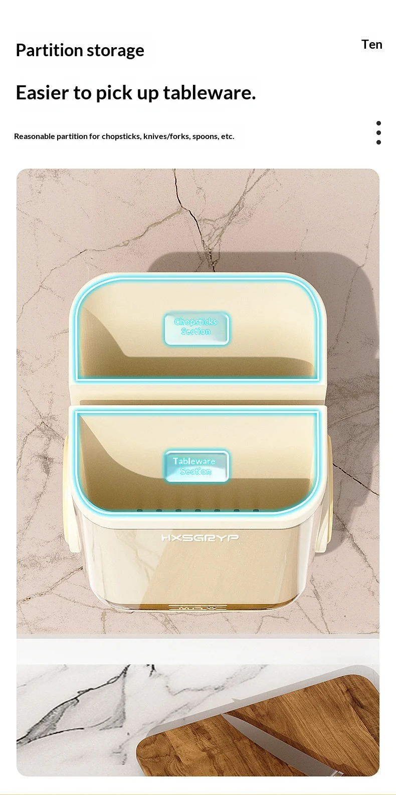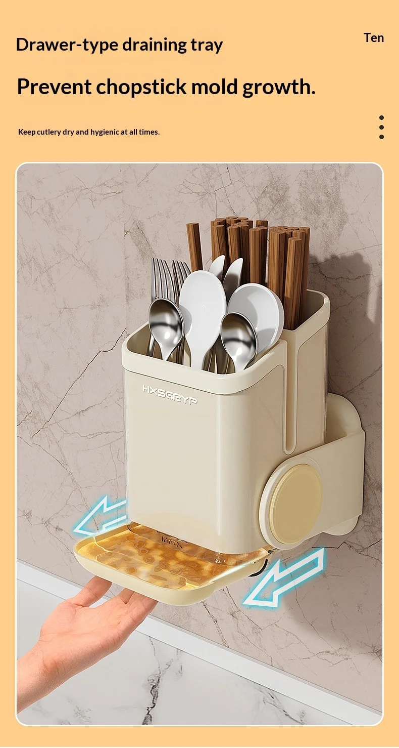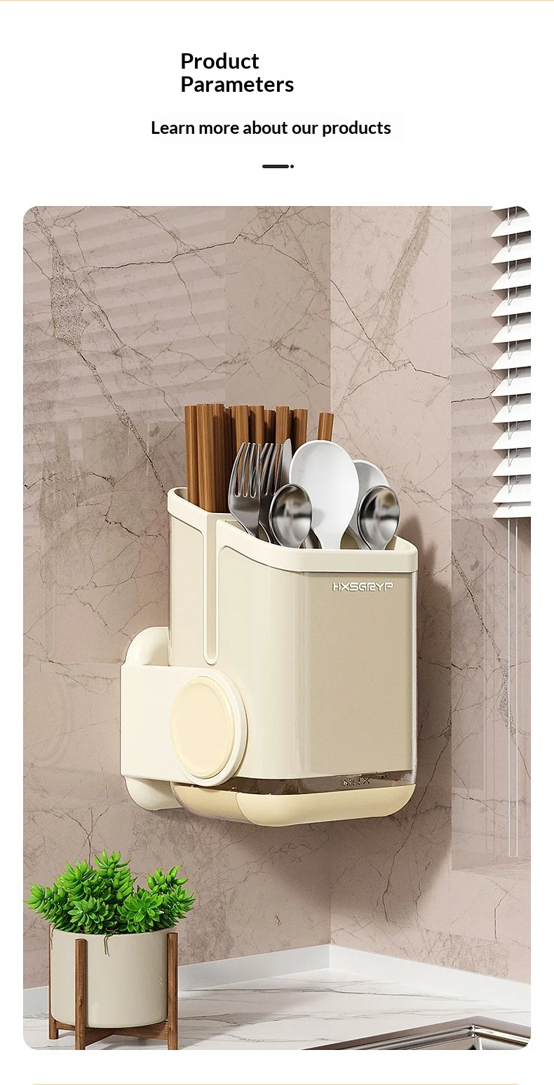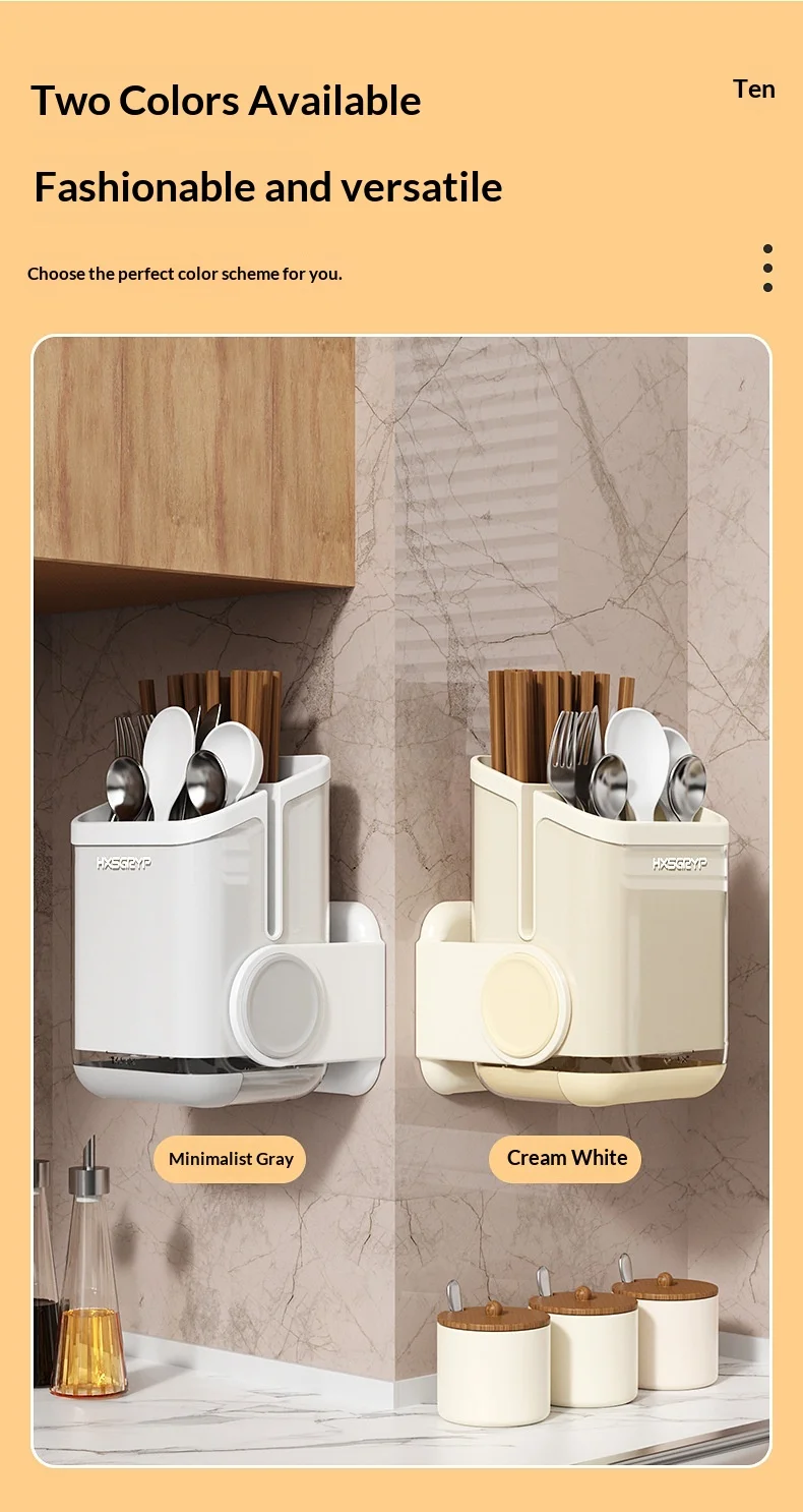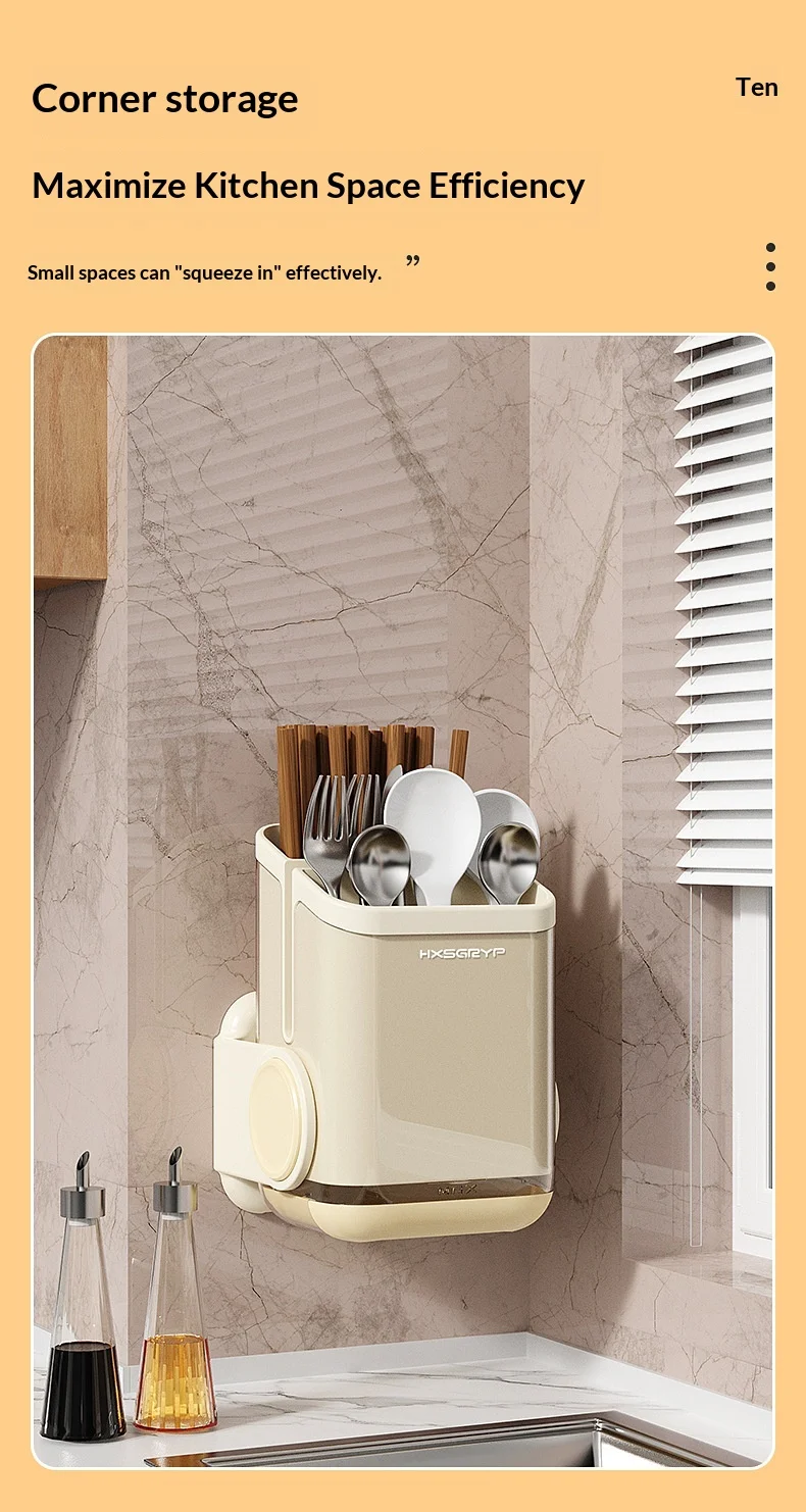 Plastic Kitchen Wall-mounted Punch-free Non-folding Chopsticks Holder Rotatable Design Dual-Purpose Storage Rack for Countertop