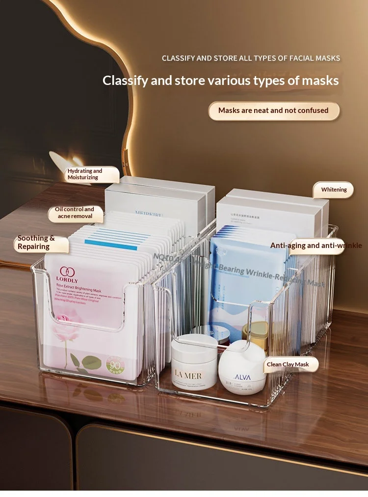 Plastic Rectangle Mask Box Makeup Box Transparent Desktop Large Capacity Dressing Table Skin Care Storage
