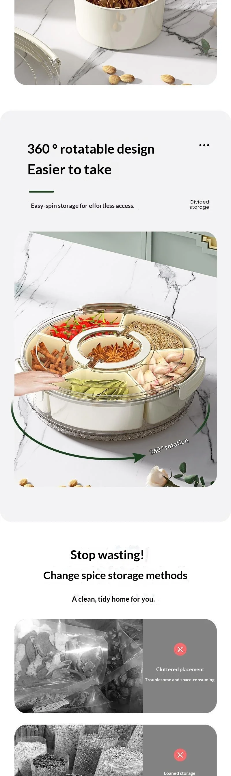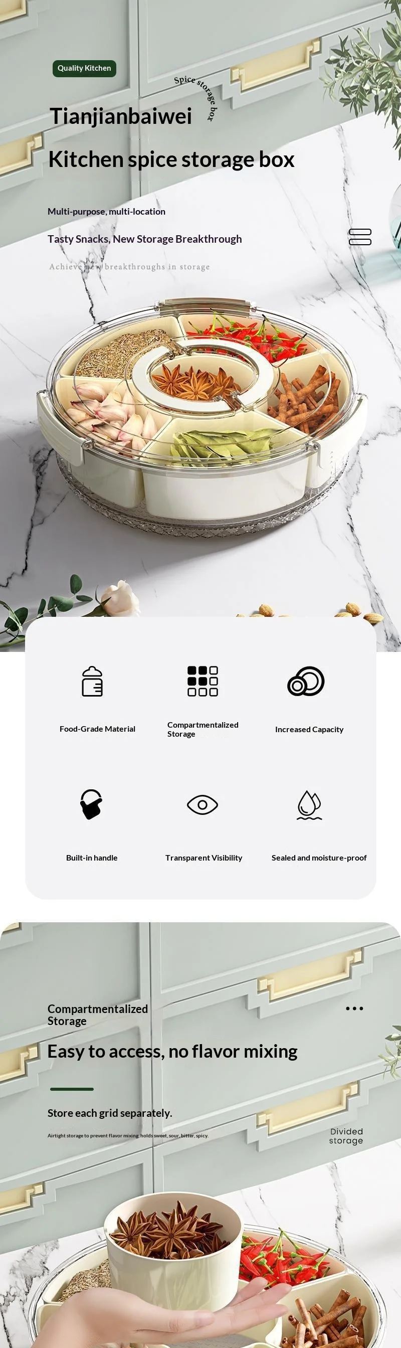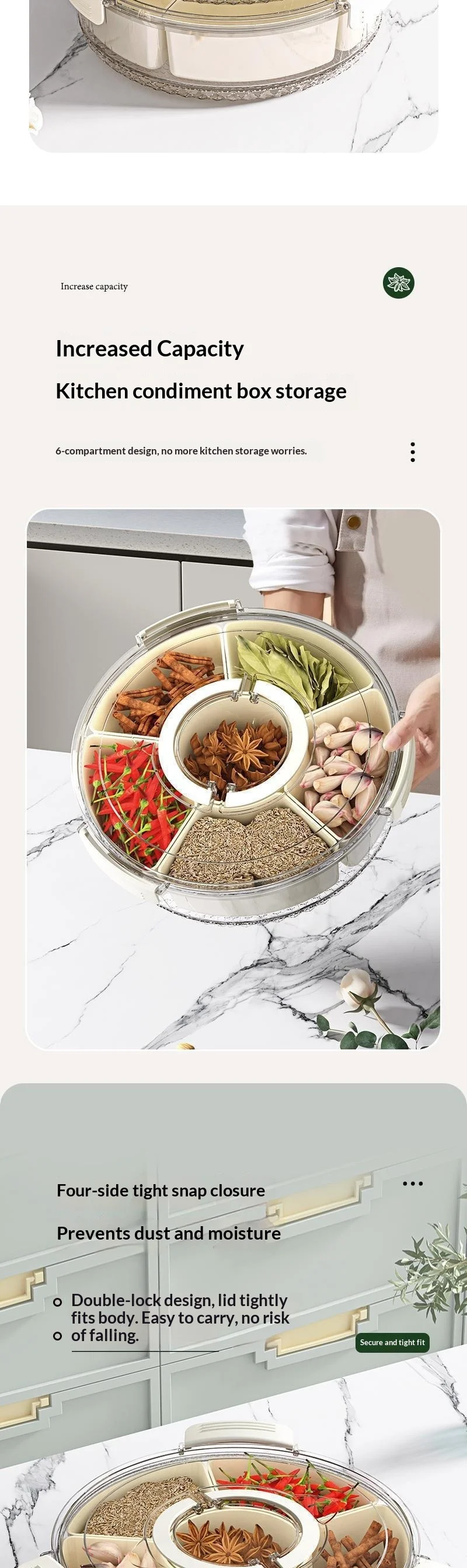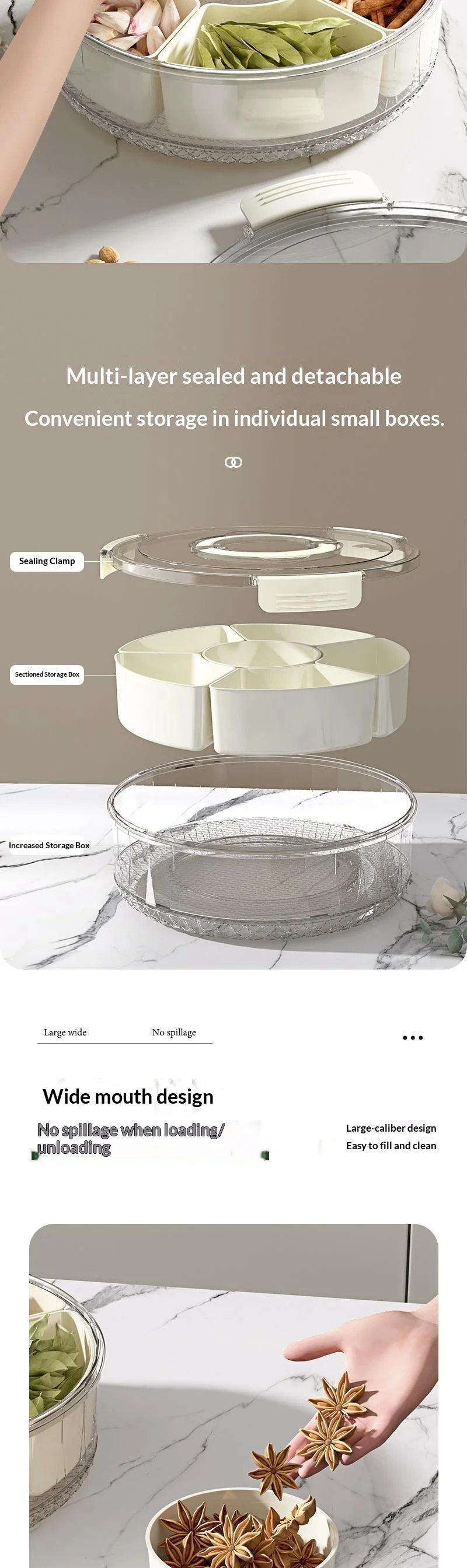 Six-compartment Portable Rotating Outdoor sealed Plastic Spice Storage Box Modern Simplicity Design Transparent Dried Fruit Box