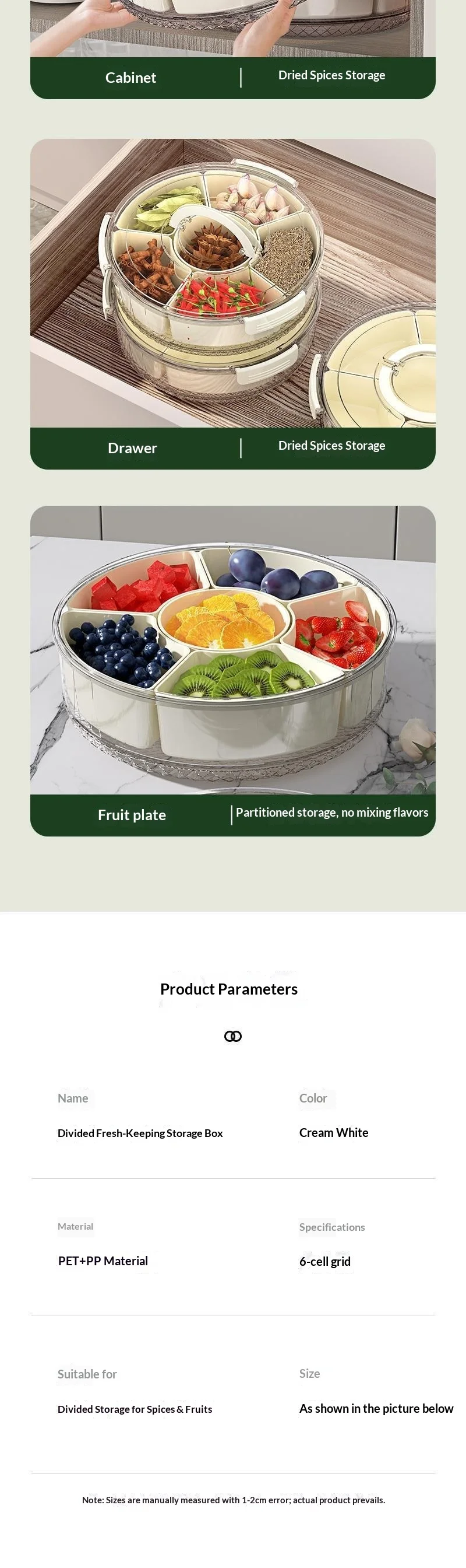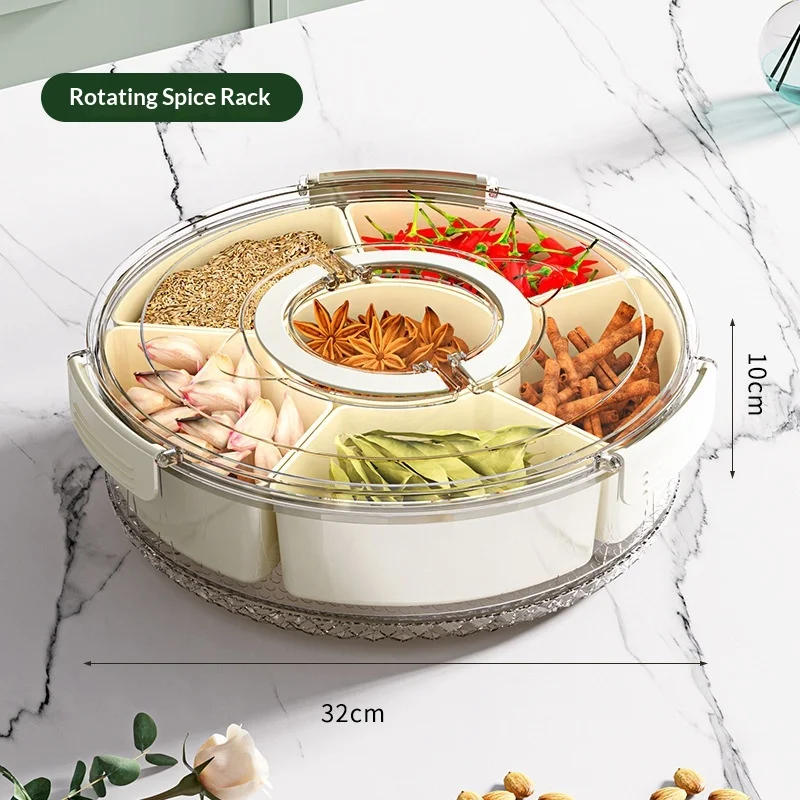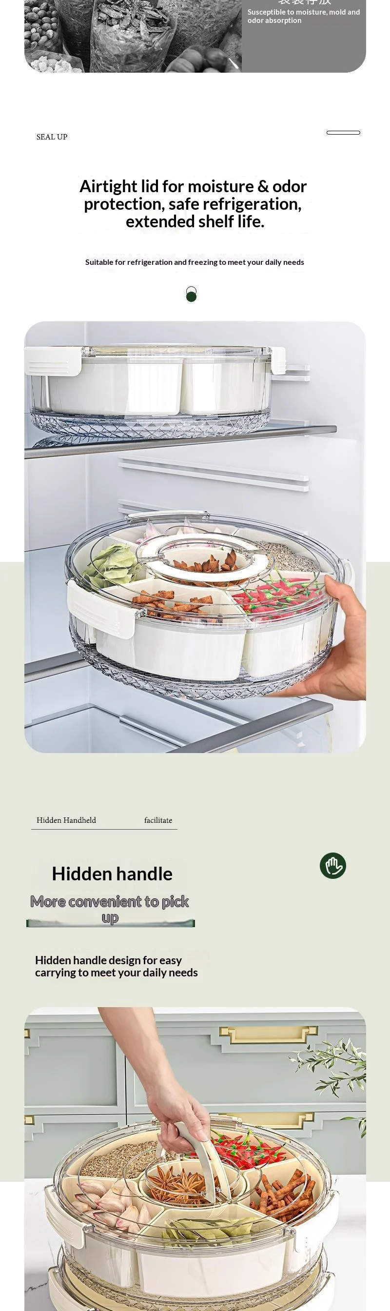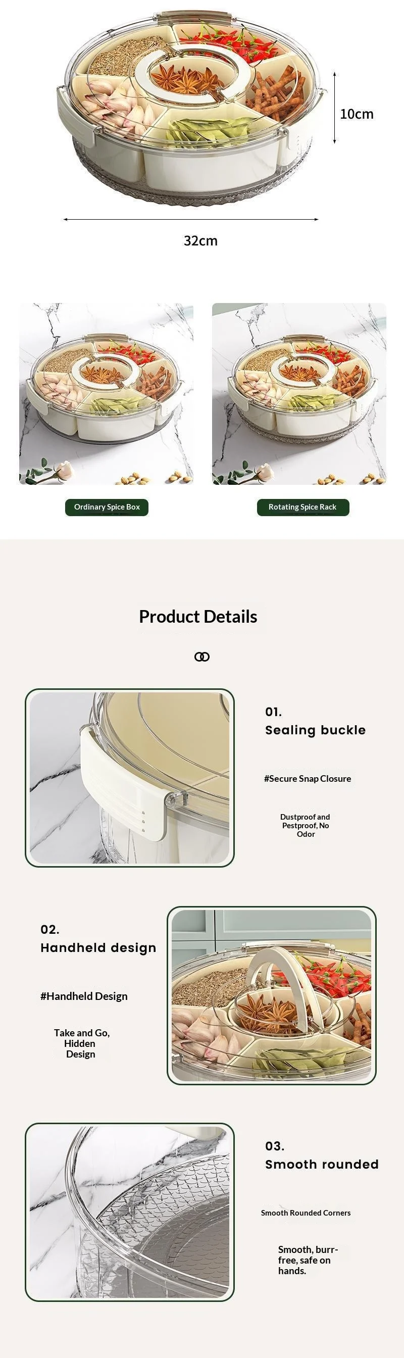 Six-compartment Portable Rotating Outdoor sealed Plastic Spice Storage Box Modern Simplicity Design Transparent Dried Fruit Box