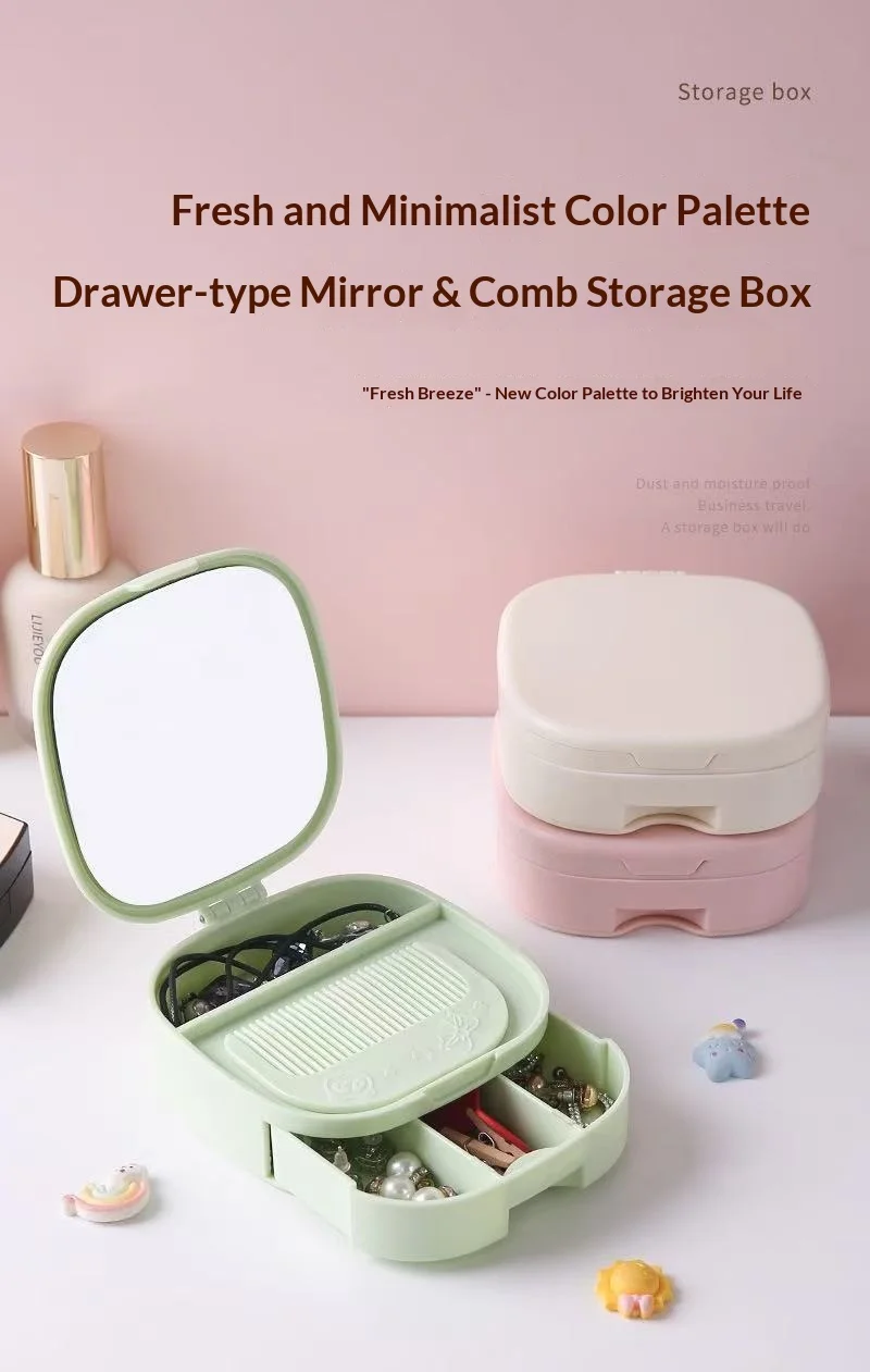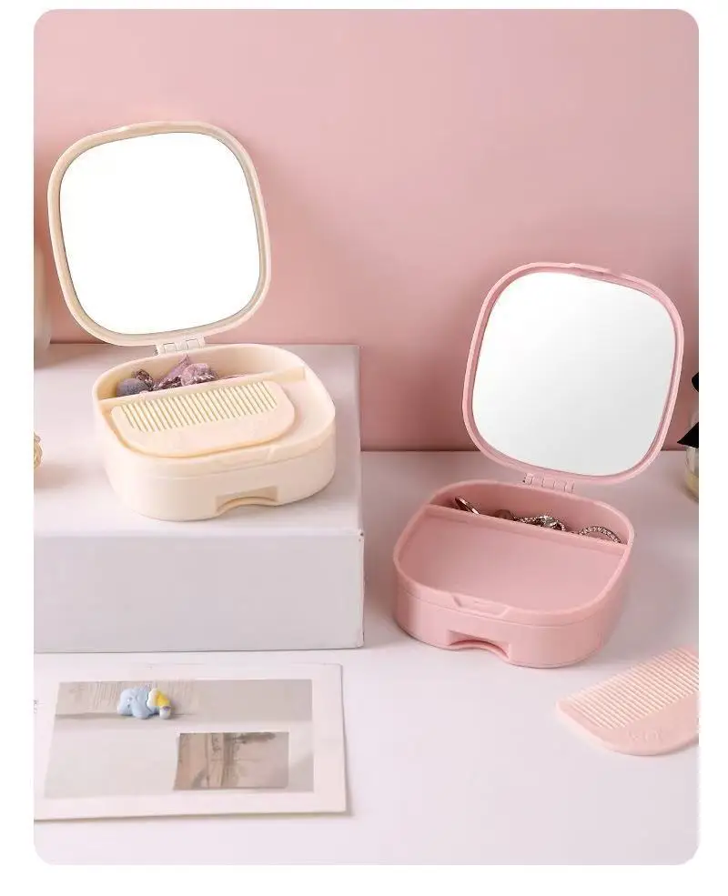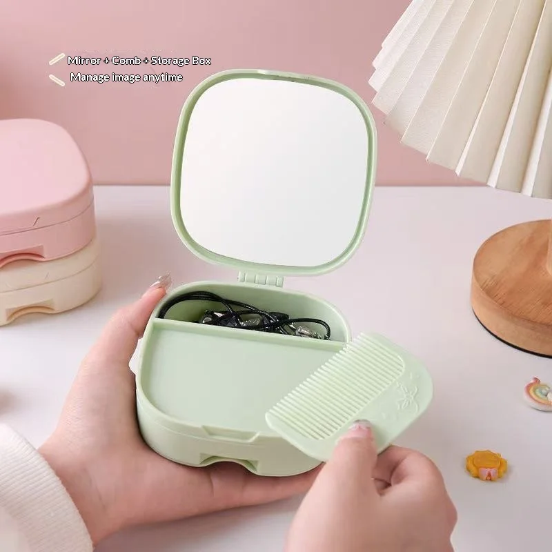 Student Portable Desktop Storage Box Nordic Ins HD Makeup Mirror Folding Dormitory Princess Dressing Mirror