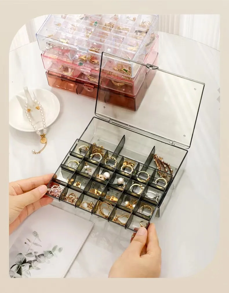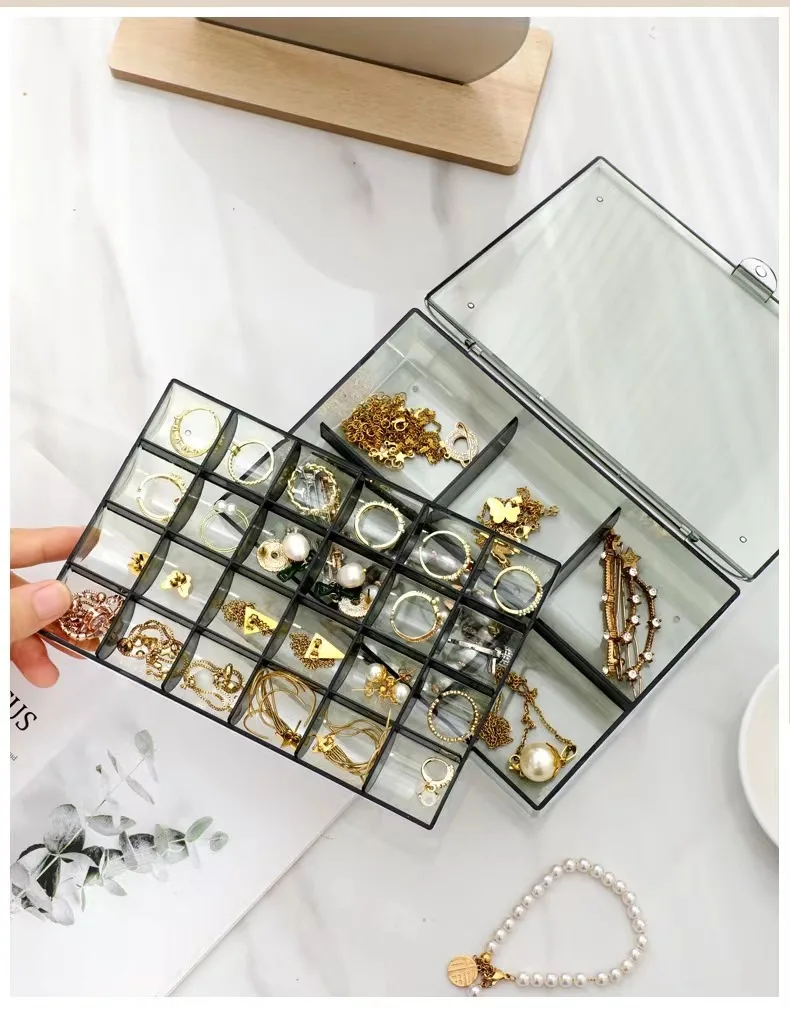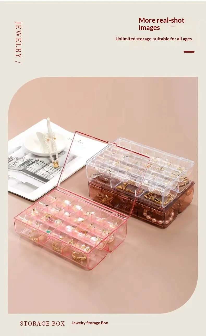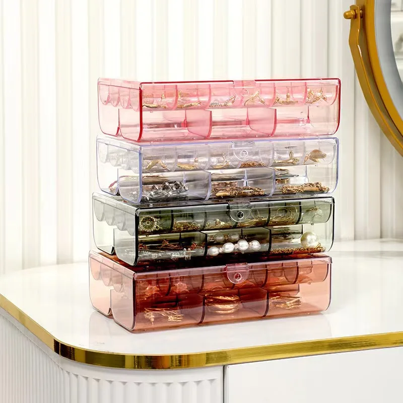 Transparent Multi-Layer Large-Capacity Jewelry Storage Box for Earrings Studs Rings Necklaces