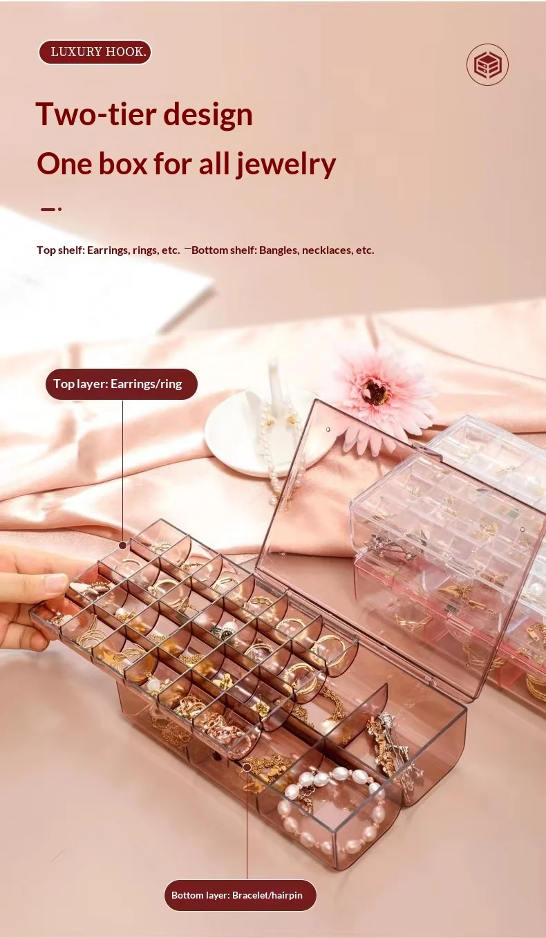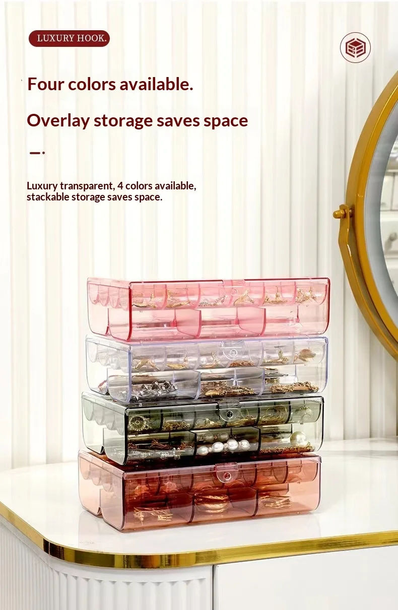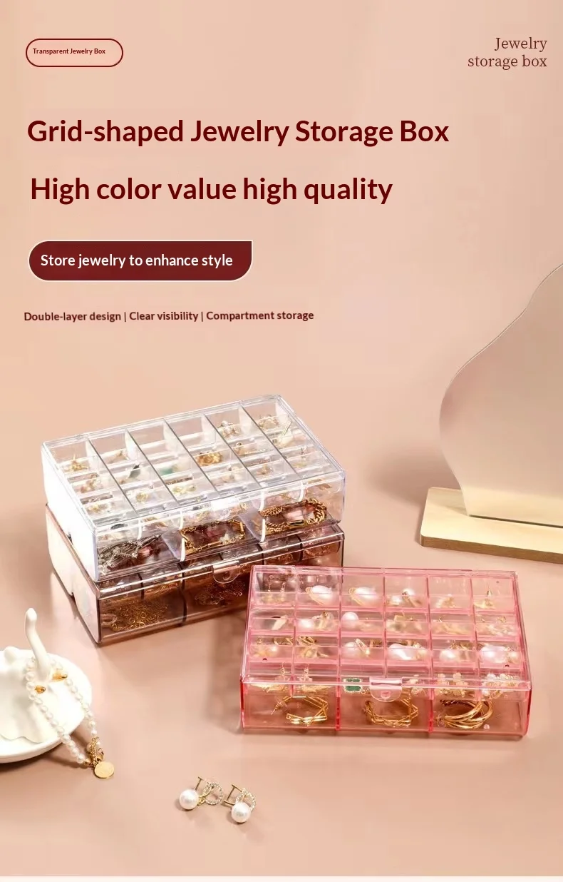 Transparent Multi-Layer Large-Capacity Jewelry Storage Box for Earrings Studs Rings Necklaces